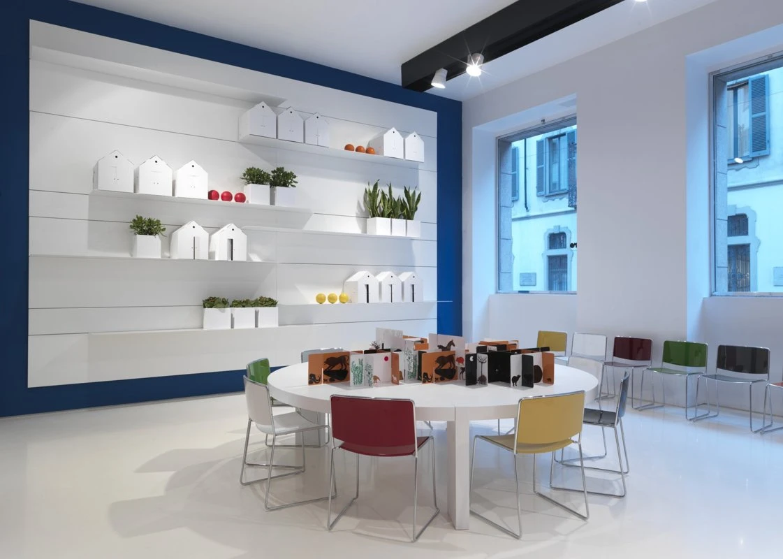 From 27 November to early January, on the upper floor of the Porro shop in the centre of Milan, the spotlight is on “Spindle Chairy Tale”: a fairytale setting with an essential, metropolitan style, obtained by combining the most representative pieces in the Porro catalogue, in their most bizarre conformations and finishes, with the tiny version of the famous Spindle chair.