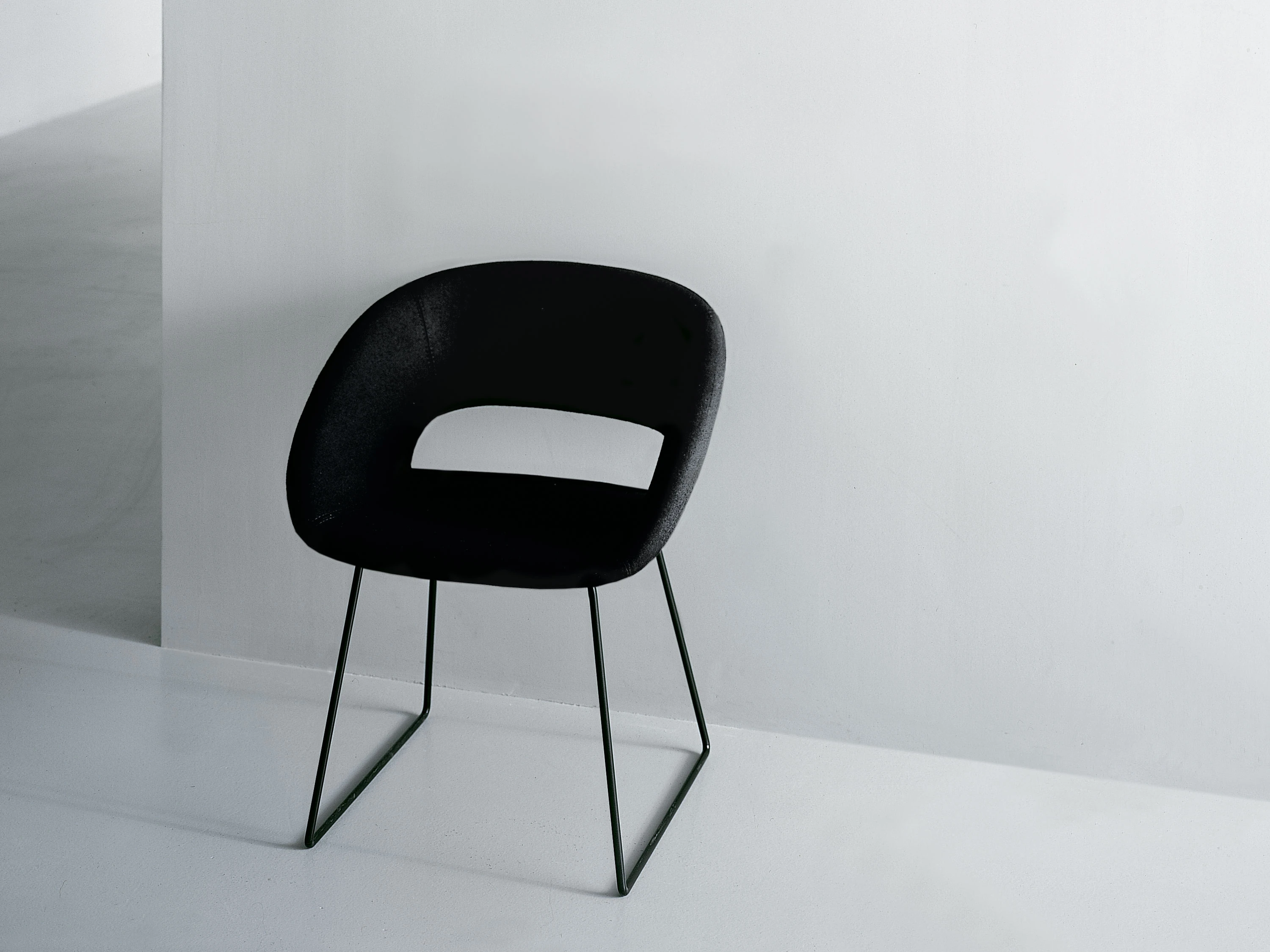 Porro presents a “cockpit” armchair, designed by Decoma Design, with removable fabric, leather or eco-leather body and available on a fixed structure in chromed, white or black metal. From the dining room to the office, Conch is characterised by its pleasant oval form, the softness of its covers and its design with an elegant central groove.