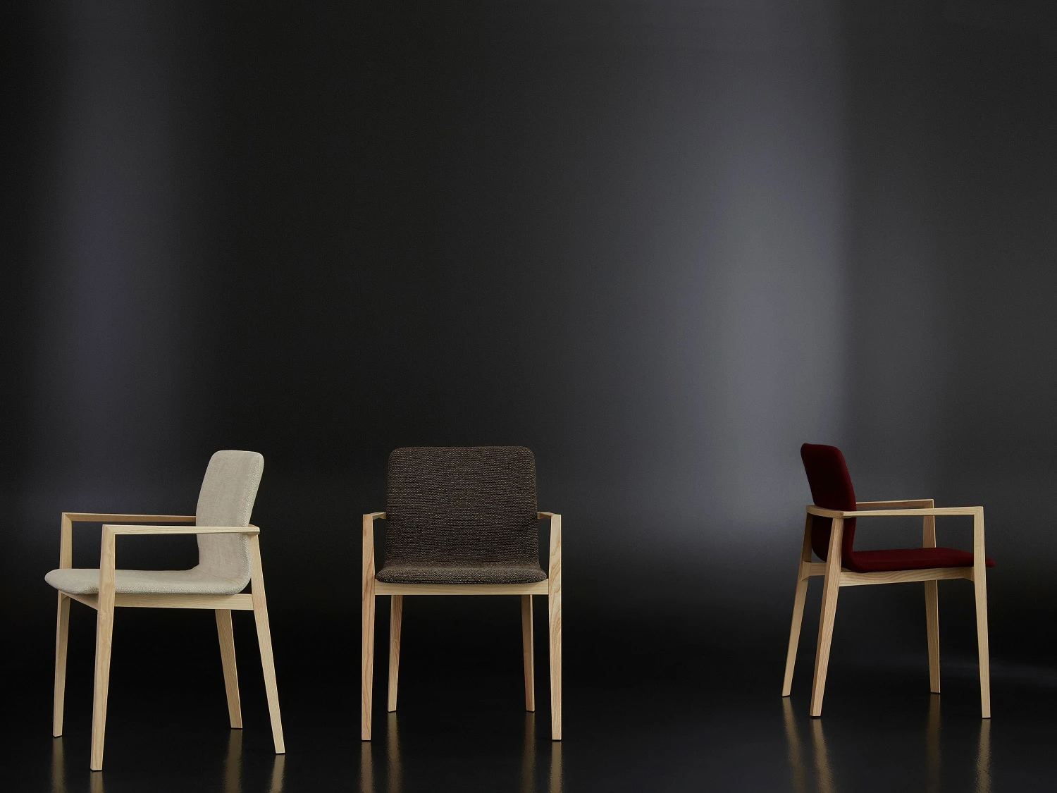 Garda is an extremely comfortable and welcoming armchair, with clean lines and a cocoon shape. It consists of a light and thin solid ash structure, in the natural, stained black, white and red finish and by an ergonomic and upholstered seat, extremely comfortable to use. The seat can be covered in fabric, leather, eco-leather or Nabuk according to the range available. Suitable to any room, from the house to the office, Garda can also furnish collective spaces such as restaurants and hotels.