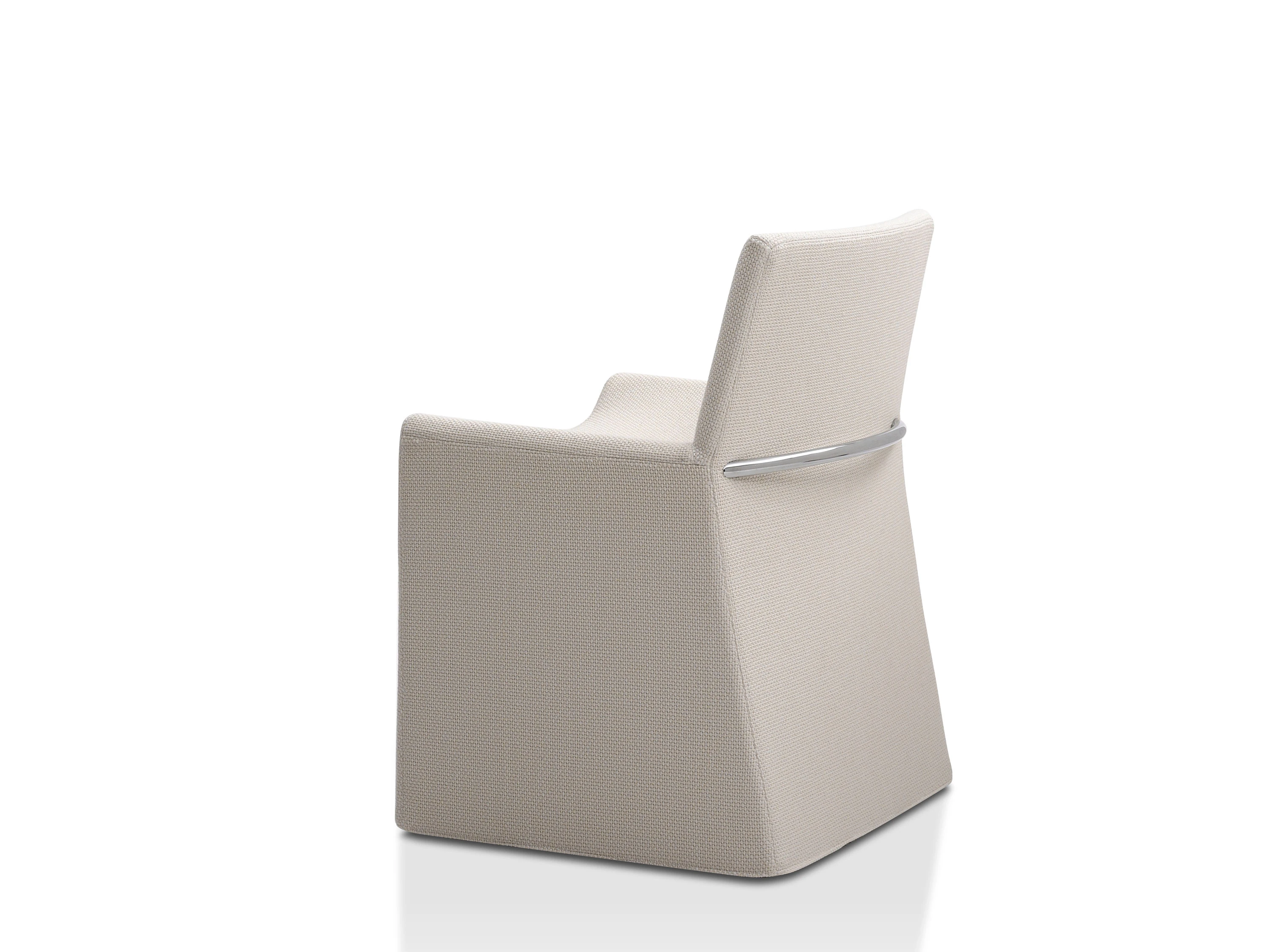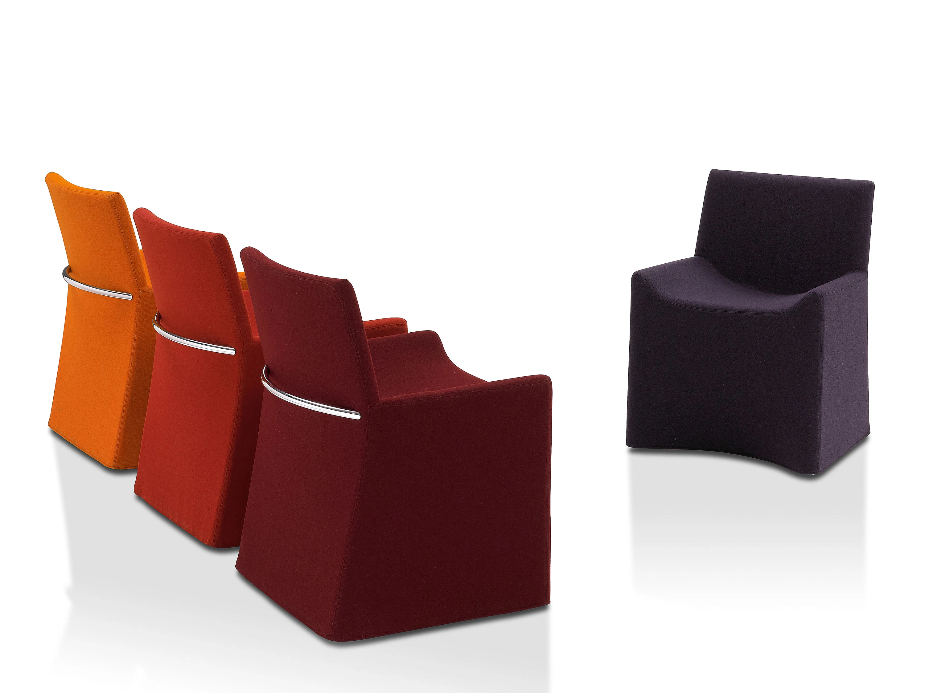 Soft Chair is a removable comfortable and wrap-around chair, available covered in all fabrics of our collection. It is available with or without chromed tubular handle. Soft Chair is designed for the dining room or a more reassuring and informal meeting-room.