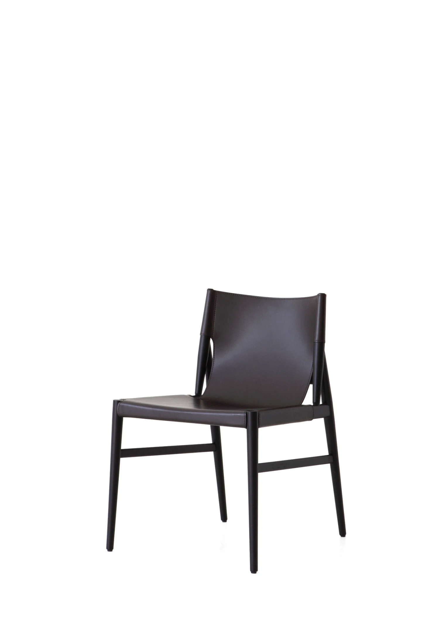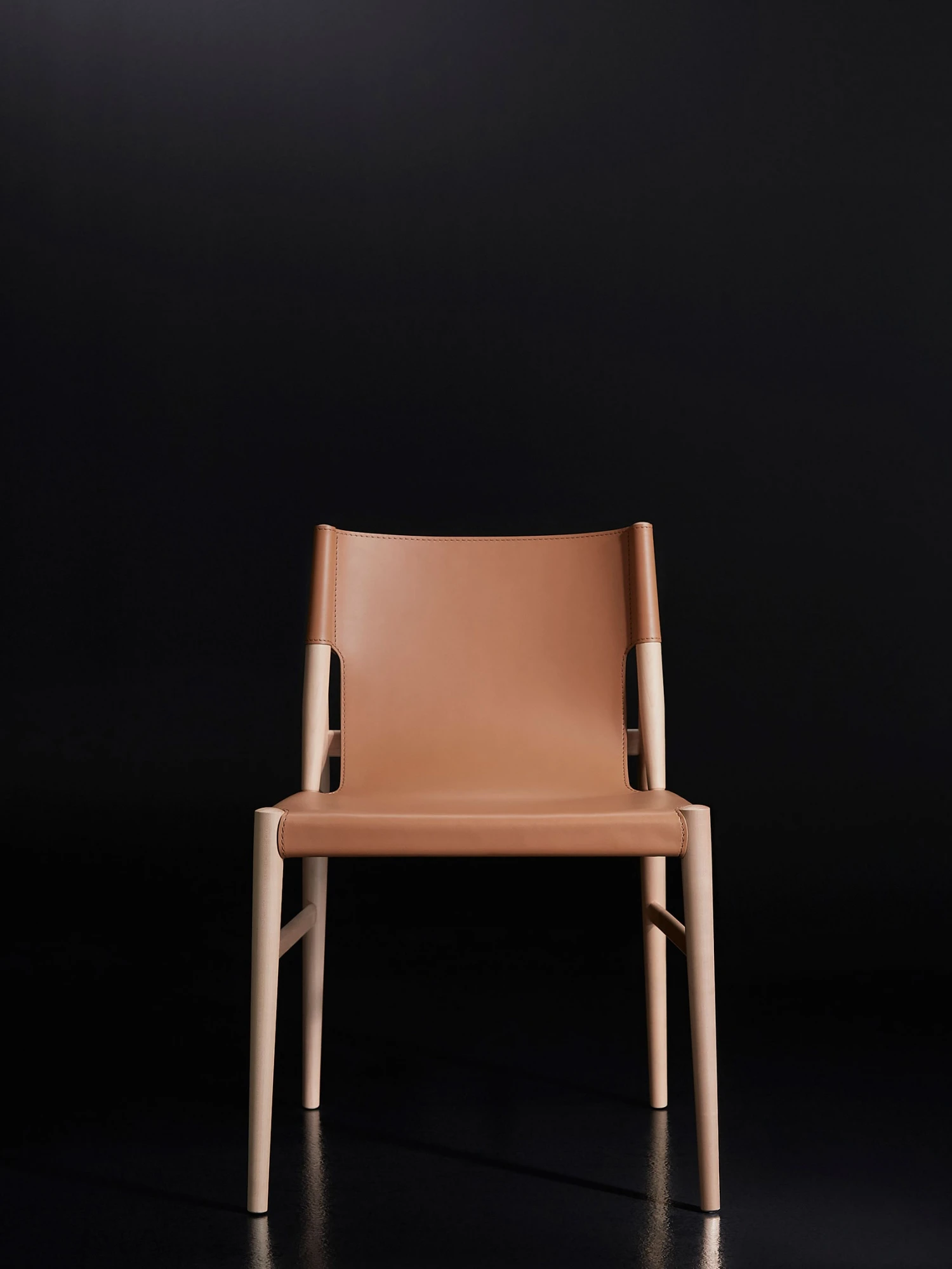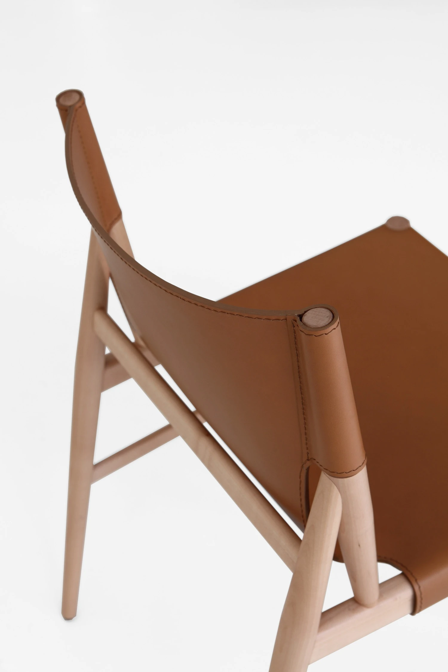 It is a chair with precise contours that draws inspiration from typical 1950’s furniture, making it up-to-date and providing us with a unique product. Voyage is made up of an exposed framework in tapered solid maple; across it, a leather covering is stretched and gives shape to a very comfortable and ergonomic seat and backrest.