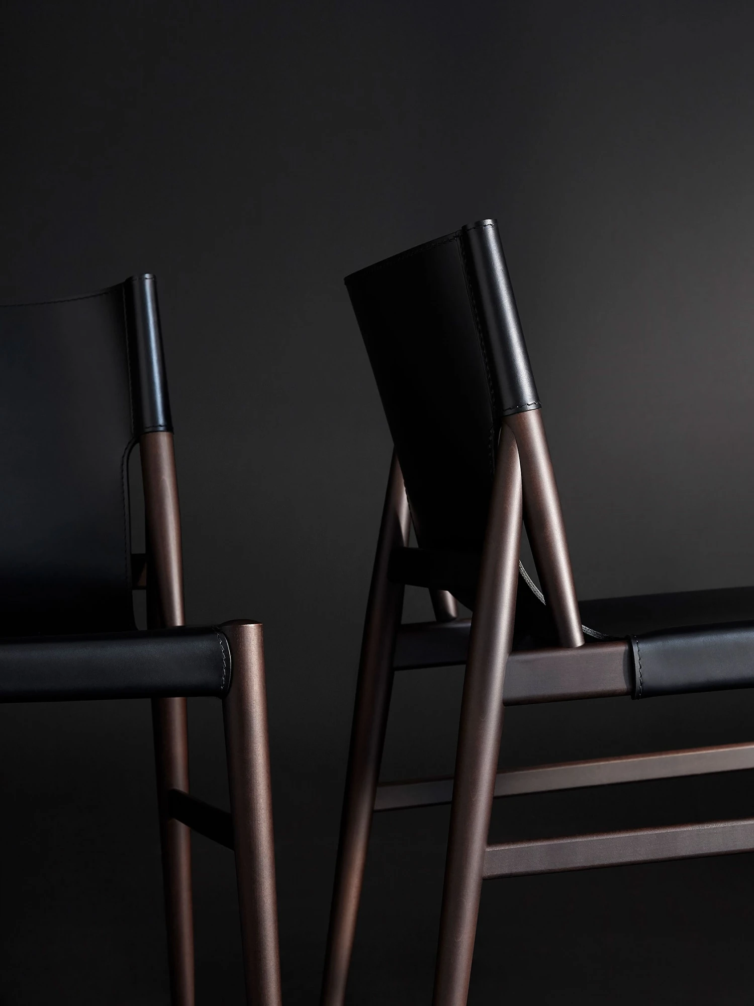 The solid wooden framework is available in three versions: natural, black stained and brown stained maple. These framework finishes can be easily combined with the saddle leather colors of the Porro collection.