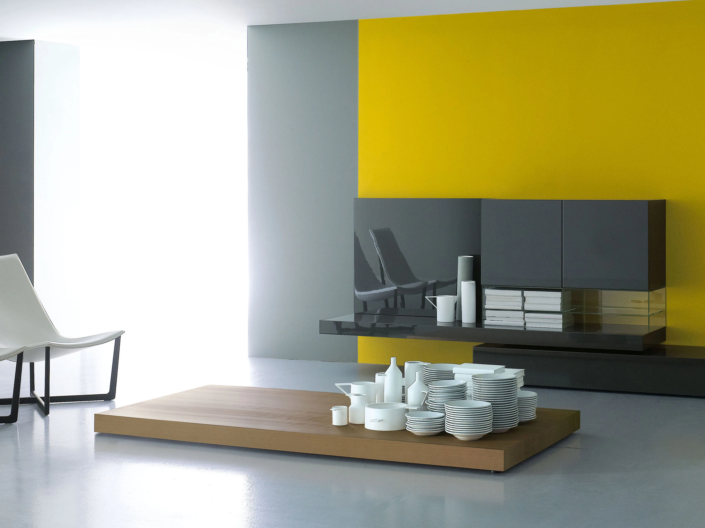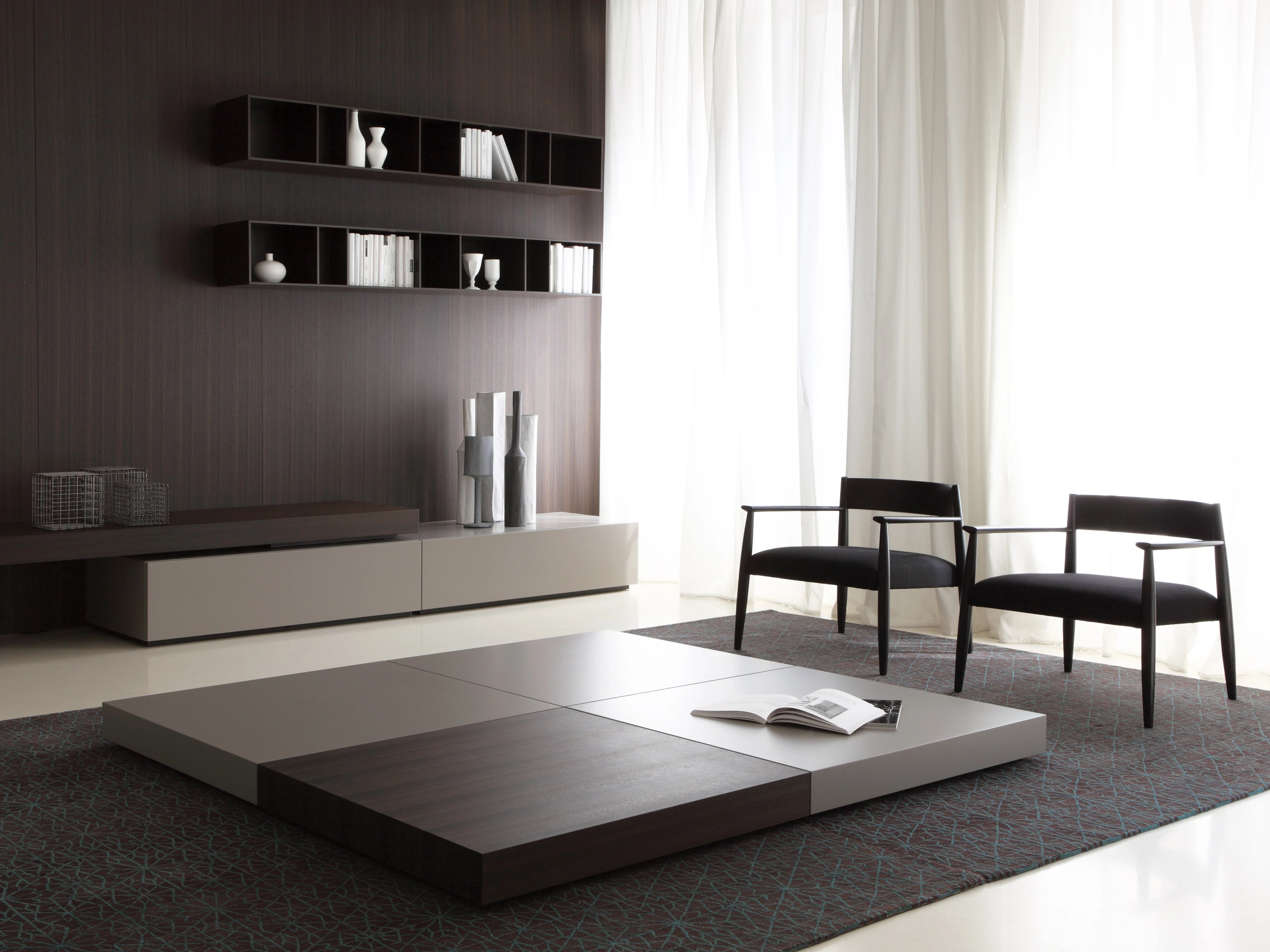 Low tables made of a wooden top with an important thickness put on the floor. Available in the woods of Porro collection or lacquered in the matt and glossy colours of our collection.