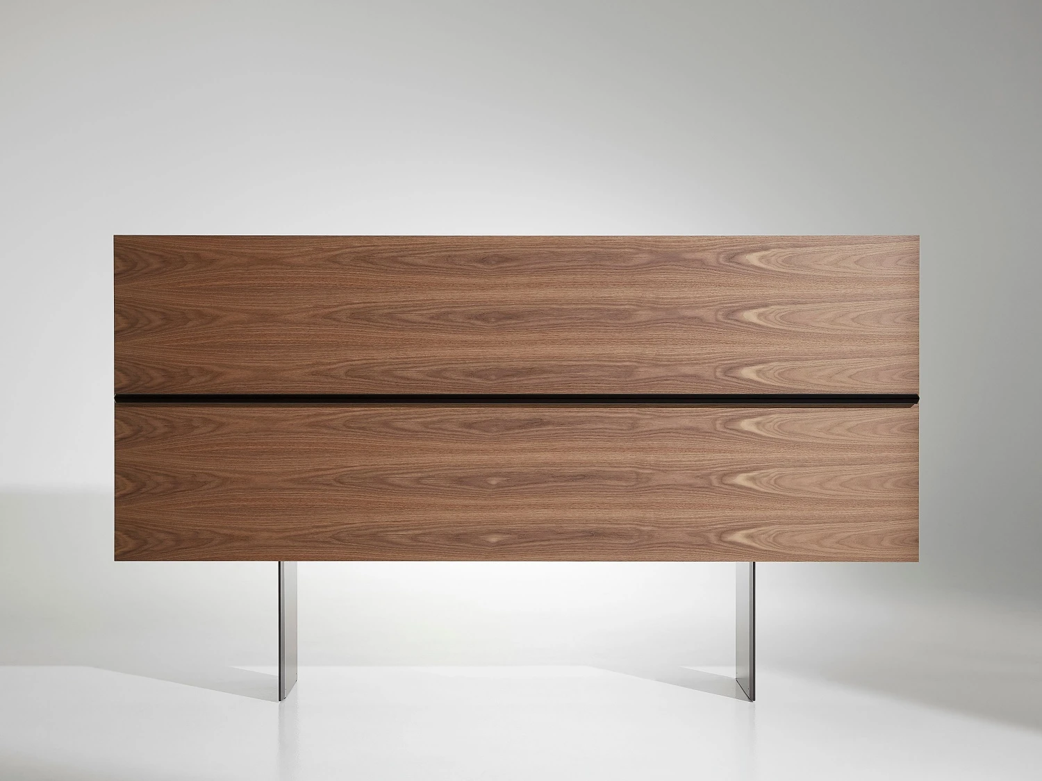 The floor version of the sideboard rests on a minimal iron finish metal foot but it is available also in hanging version.