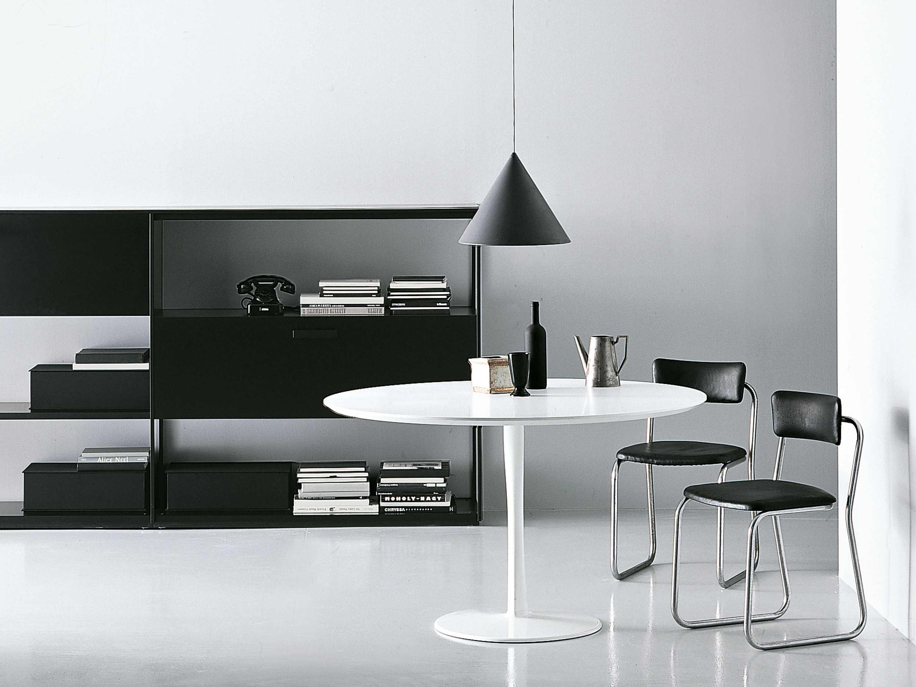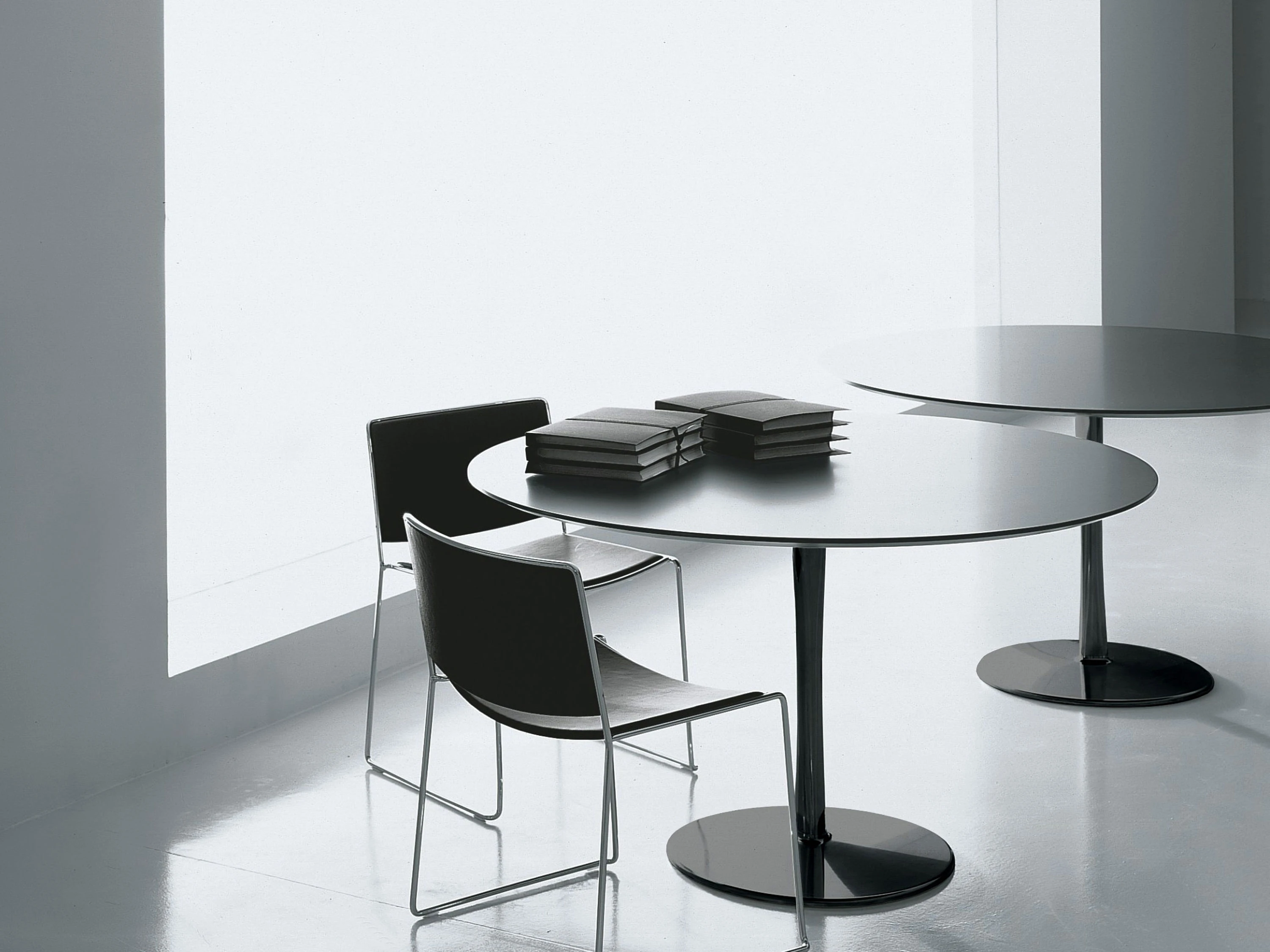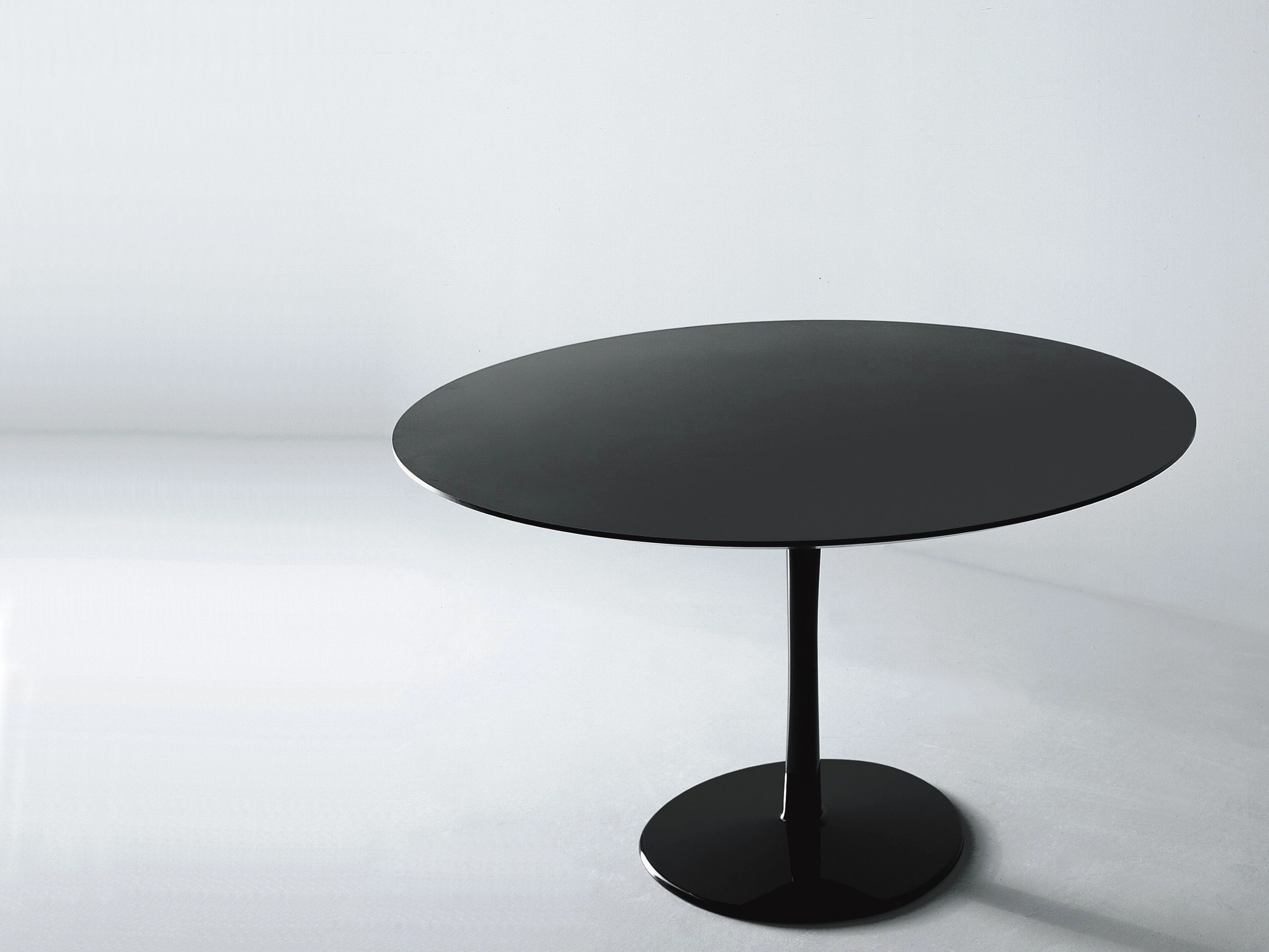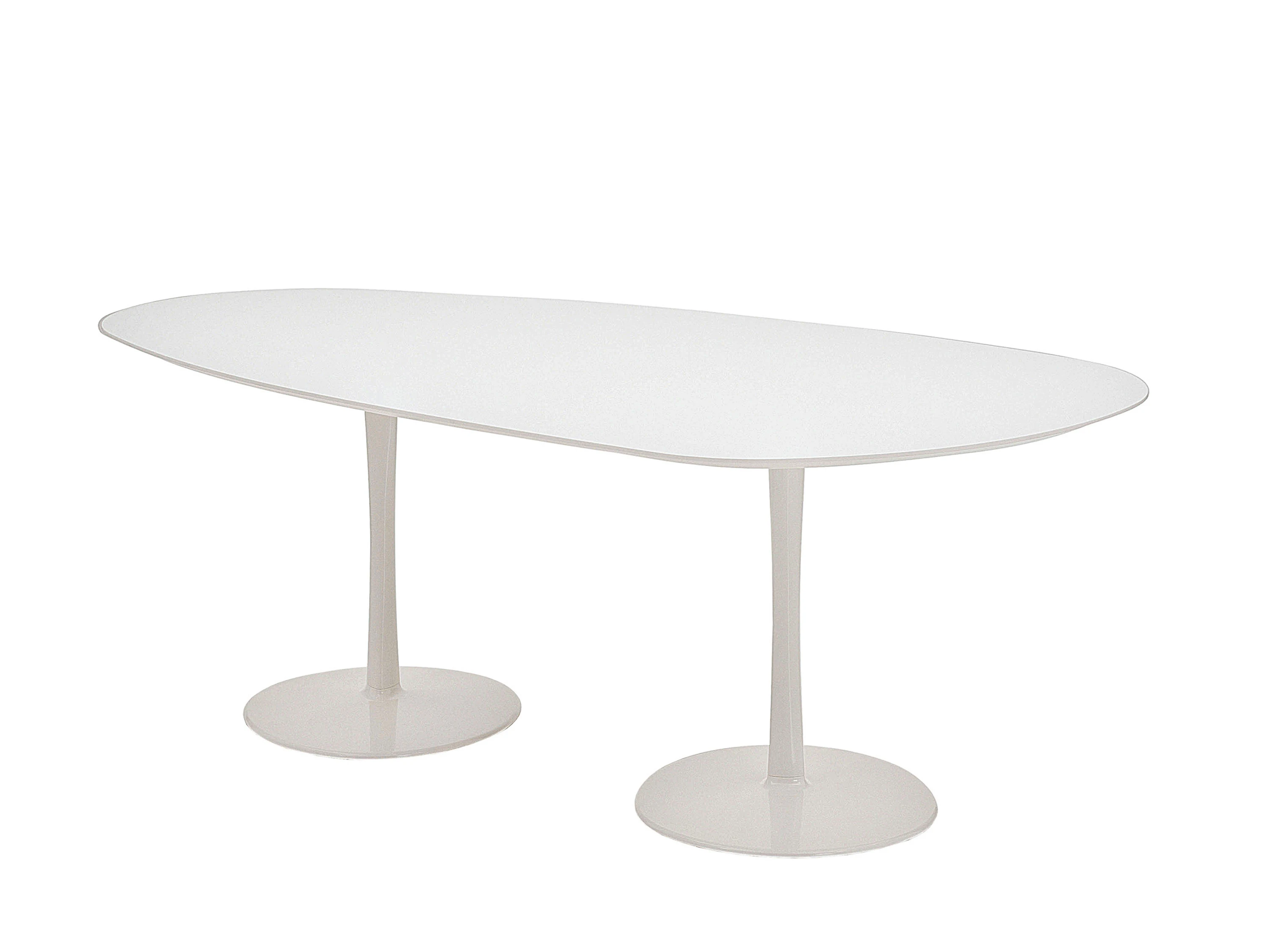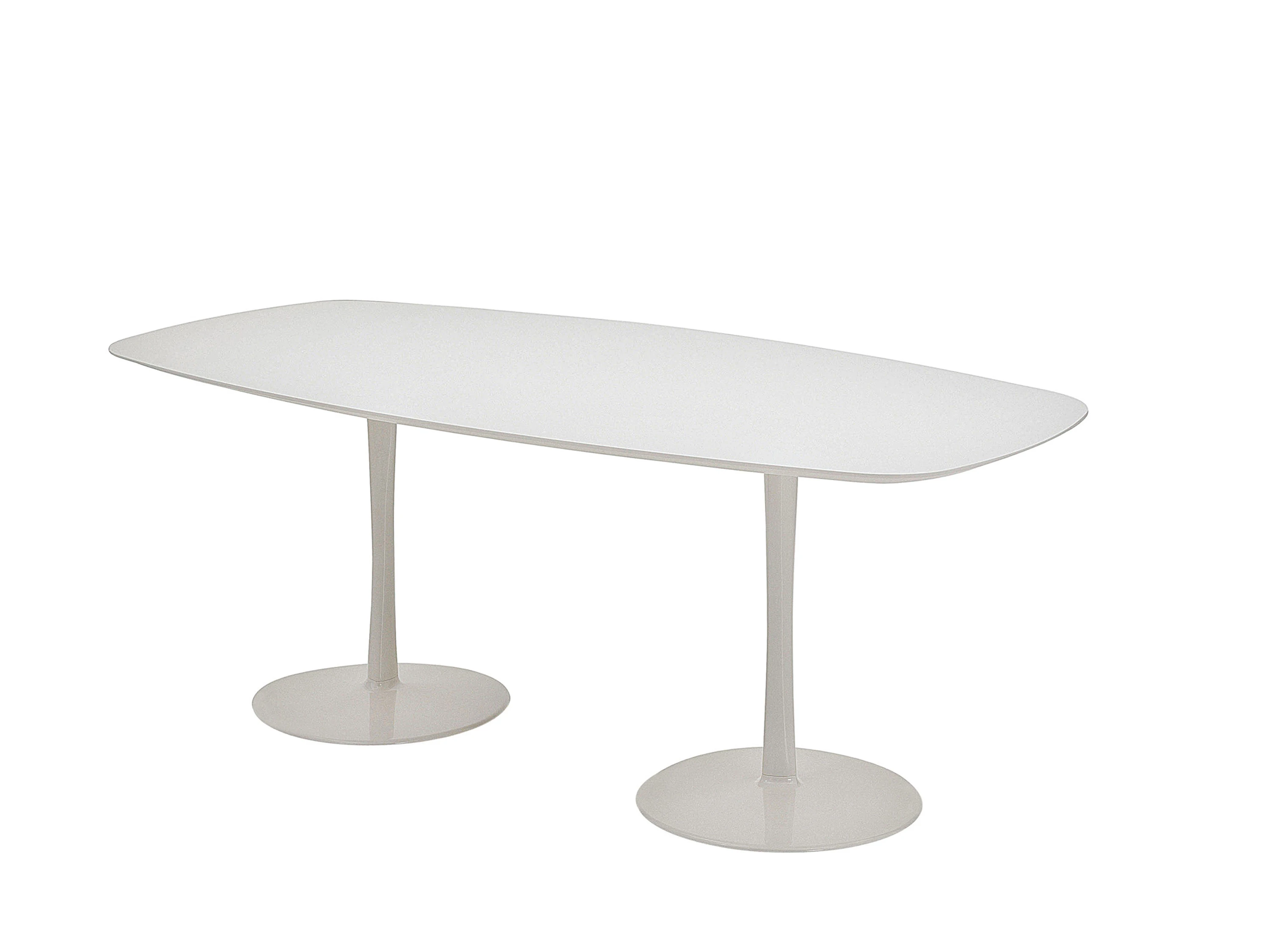 Join, designed by Decoma Design, is a table with a circular, oval, square with rounded corners or irregular top, featured by a bearing, ‘drop’ shaped leg with a suggestive geometric volume. It is available in three different diameters (800 mm, 1000 mm, 1250 mm) and other 5 dimensions. Join will suit either public or private spaces. The structure is white or black lacquered aluminium. Top can be matt and glossy lacquered in all the colours of our collection and high resistance white or black matt lacquered.
