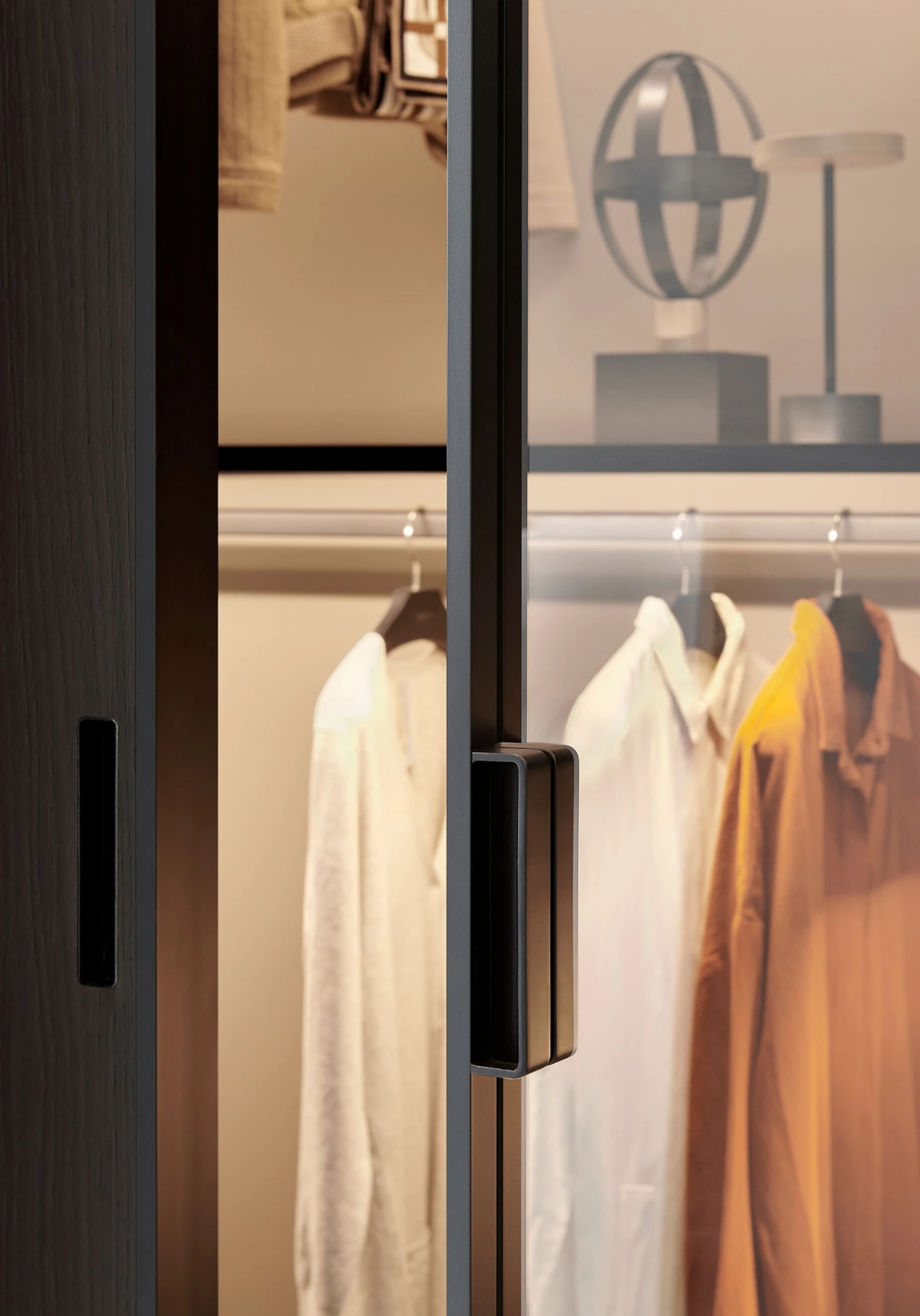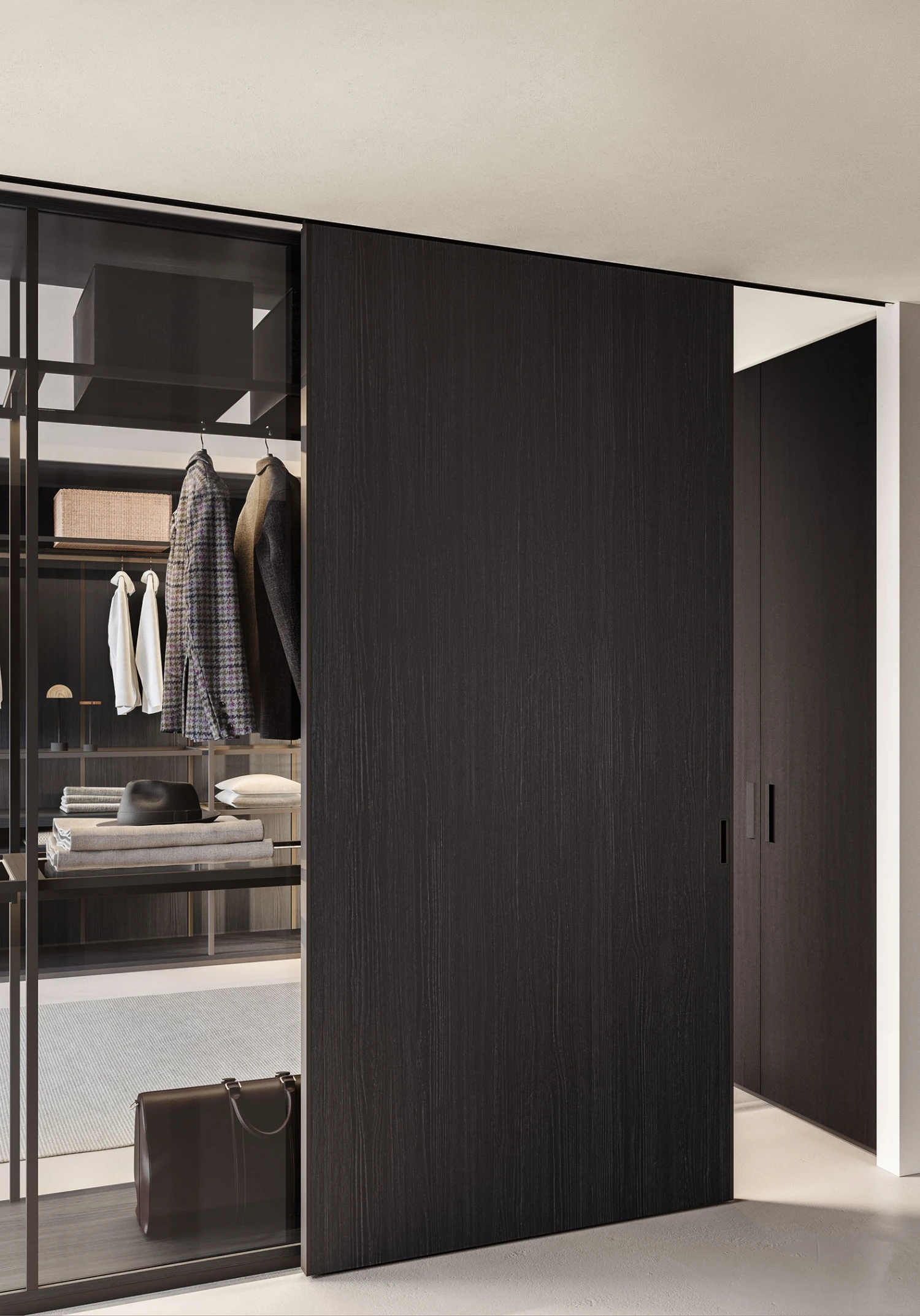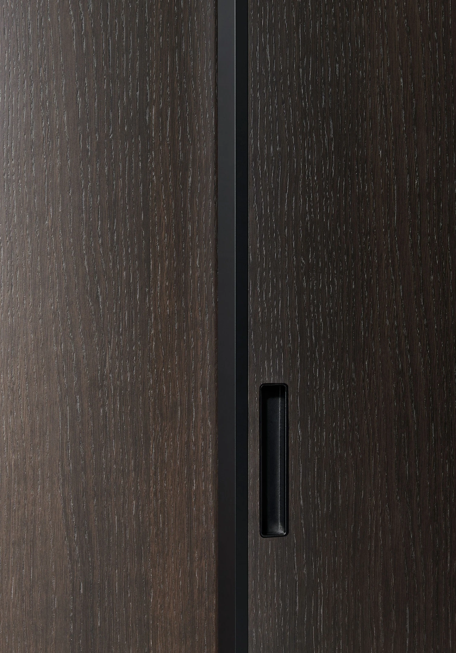 The charm of Porro’s surfaces is the protagonist of Glide Kyoto, with built-in recessed handle: the ideal solution to create large mono-material walls that bound secret spaces. The warmth of Porro collection’s woods, resulting from an accurate research study and deeply rooted in Porro’s DNA, as well as the vibrant nuances of a comprehensive range of matt-lacquered colours to cater to the most diverse needs, along with the technological surfaces that combine high resistance and refined textures, ensure perfect uniformity even for the largest and most complex compositions.