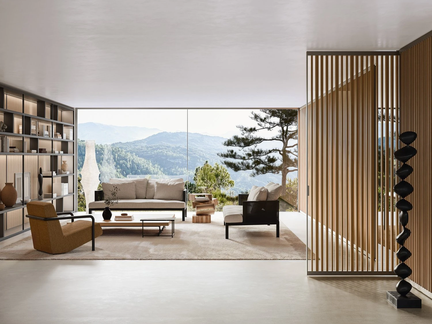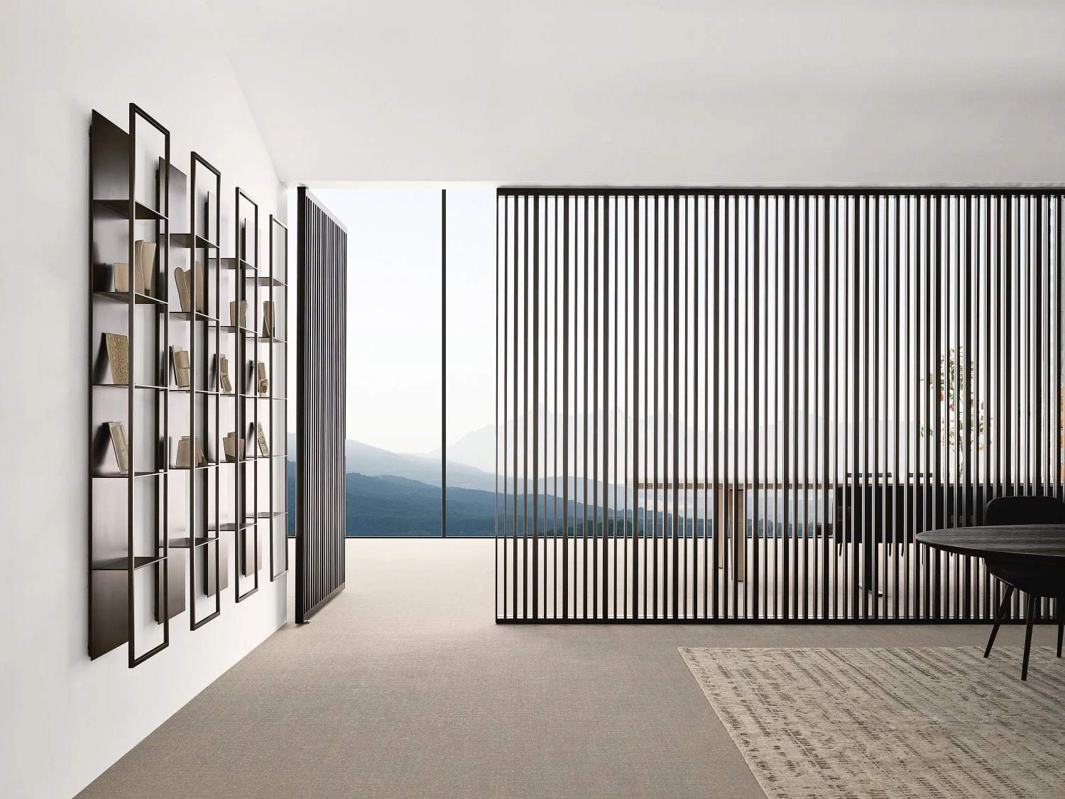Porro expands the partition project developing the Glide system, which comes in different design solutions that can however be perfectly mixed and matched with one another. With their sleek yet materially rich design, Glide partitions are made up of large made-to-measure wings featuring an L-shaped metal profile that, painted in white, black, cuvée, moka or rosso antico, frames different transparent and non-transparent materials. Thanks to the upper rail, which leaves the floor intact for the sake of visual continuity, Glide sliding fixed or pivoting partitions flexibly offer different solutions to choose from or to combine together in eye-catching overlaps.