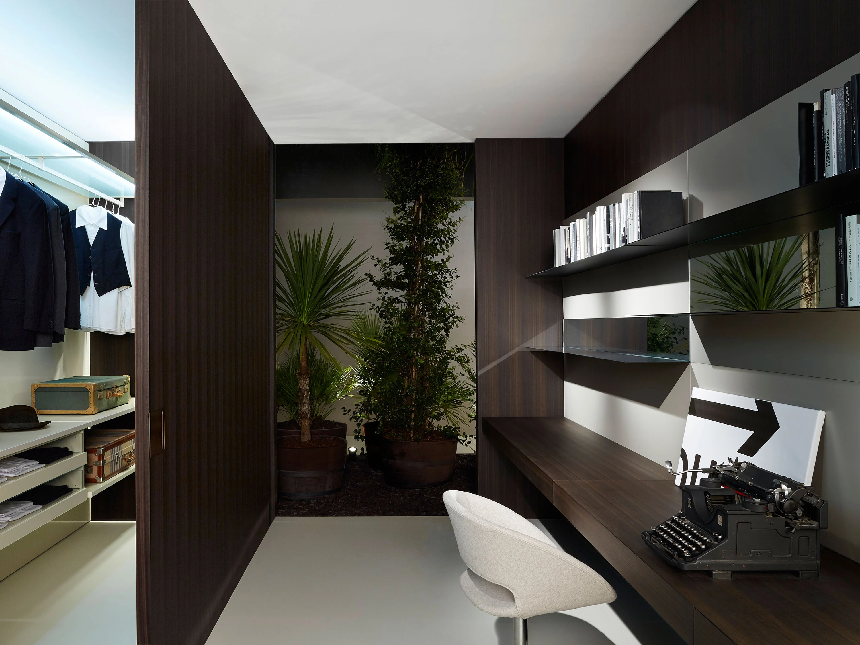 Shift is a system of wooden sliding doors, designed as an architectural divider for home ambiences. The sliding doors in fact are used in the house as room divider or as a closure for wardrobes and niches, sliding on a discreet and walkable rail. Made in plywood Shift is available in all the matt and glossy coloured lacquers, and in the woods of our collection. The door sliding and opening are eased by a rational handle in metal, available in the burnished brass finish or lacquered in all the colour ranges. Shift is an extremely versatile project, to be used in different ambiences, customizable. It is available from minimum 800 mm up to 2400 mm maximum, while up to 3000 mm in height. To fit the Shift sliding doors no change to the ceiling and the floor is required to fit the sliding rail.