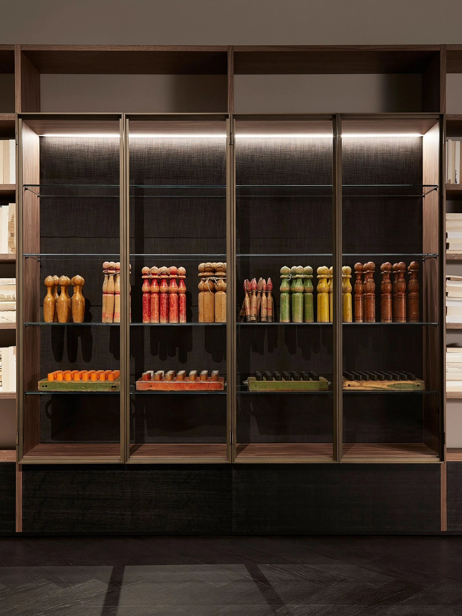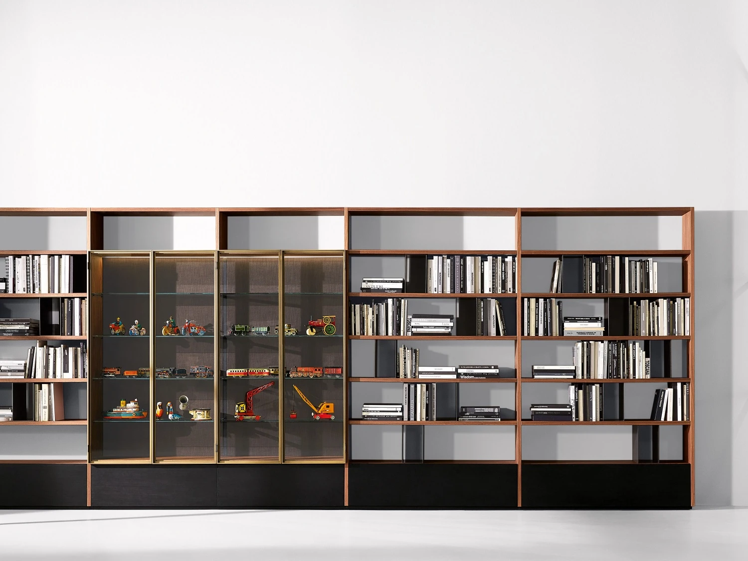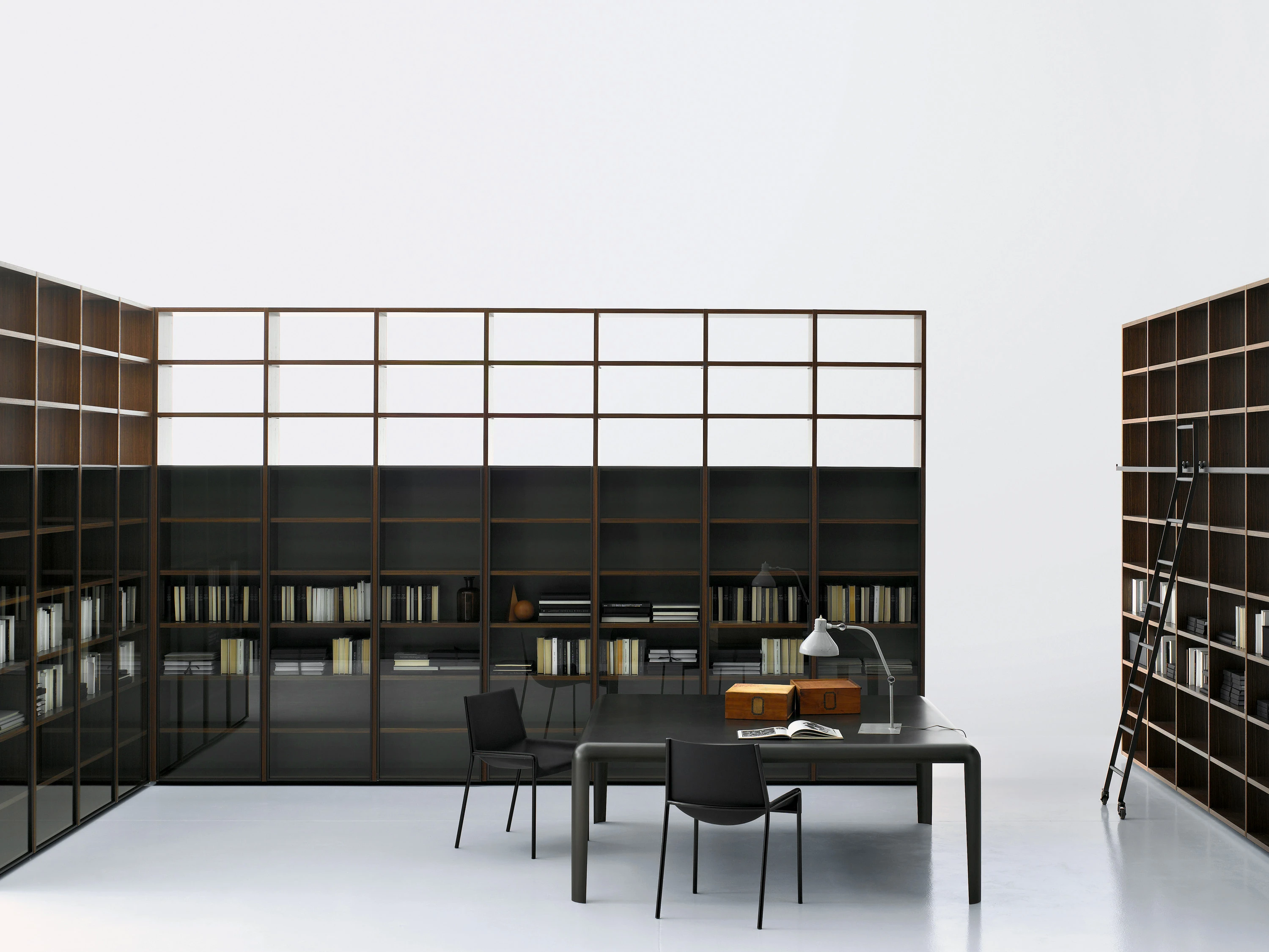 Versatile, intelligent, flexible: System enters the home and the office to meet the needs of personalities, inclinations and lifestyles of those who live there. With the wide variety and superior quality of its finishes, System is the ideal solution to plan custom furnishing projects, since it can be intelligently adapted to create highly diverse settings: classic, sophisticated, informal, or elegantly traditional. Multifunctional and eclectic due to the many functions it provides, System can be used as a bookcase, a module for electronic media, an office area, or even as an element to divide rooms and create equipped walls. Inspired by the precision and flexible project features of fine contemporary design, System has a strong and balanced personality defining room areas in a definitive way, while improving their efficiency and appearance.
