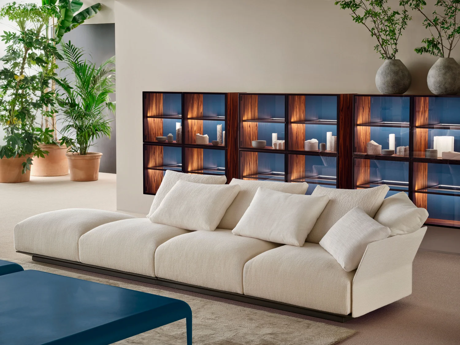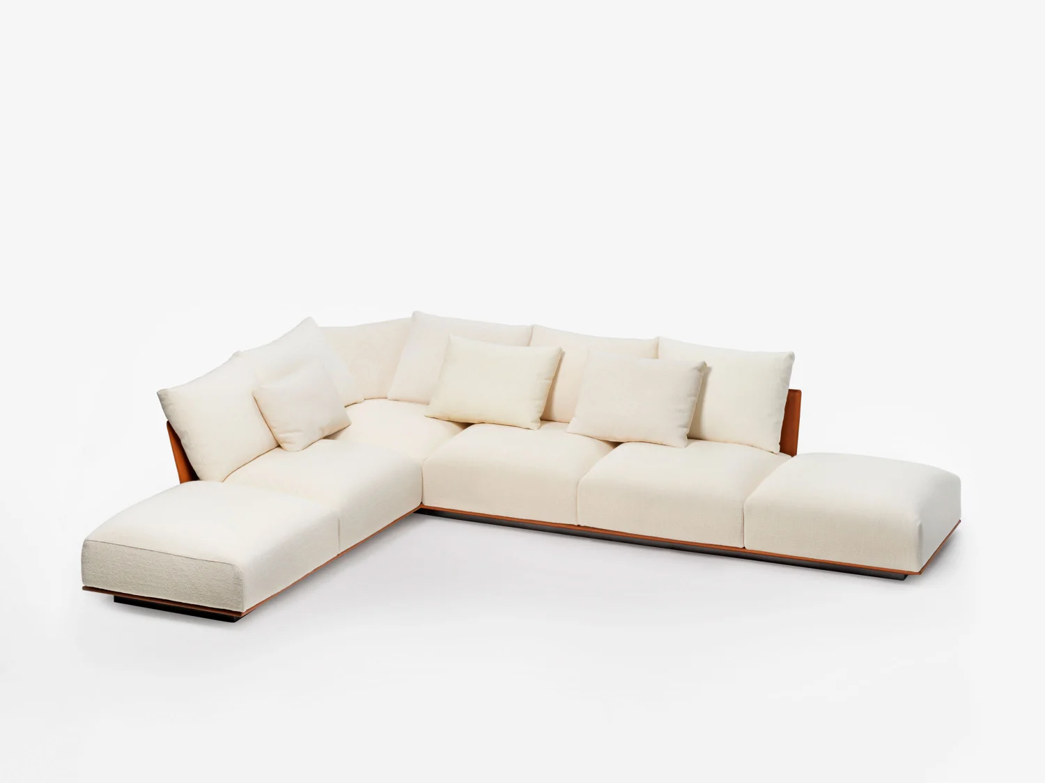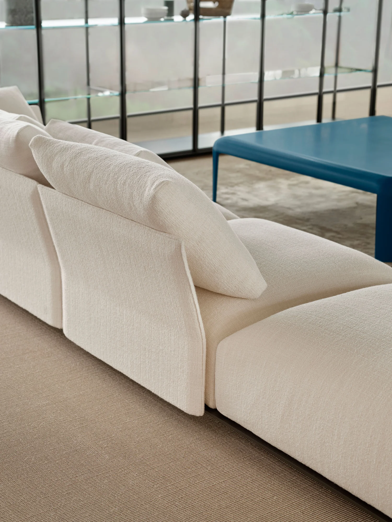 Designed to offer a deeply enveloping sense of comfort, the Tobu sofa elegantly expresses the idea of contemporary informality. Its tall, generous seats are crafted with multi-density cushions, engineered to provide calibrated support and lasting relaxation, while loose pillows add an extra layer of softness and compositional freedom. The ability to combine different fabrics and textures invites full customization, allowing for a play of material and chromatic contrasts that results in a sophisticated look.