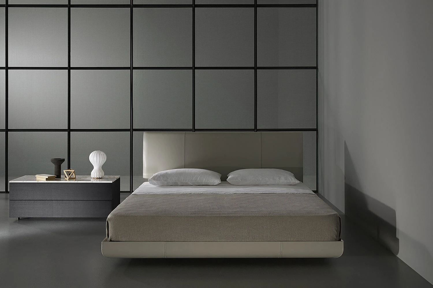 Proporzioni intime e total look in cuoio contraddistinguono il letto Sadoru. Alto e compatto, entra con disinvoltura negli spazi della casa e del contract, dove conquista per l’uso del materiale. Gli spessori consistenti, le doppie cuciture e il particolare raffinato dell’ampia testata ricurva tradiscono un progetto creativo ed ingegnoso e un lavoro di realizzazione quasi artigianale, da selleria.