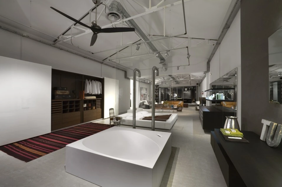Realizzato su progetto di Piero Lissoni, BY Lyon si sviluppa in un suggestivo loft di circa 250 mq con struttura metallica a vista, lucernari e pavimento di tipo industriale, come un’abitazione open-space che supera la conformazione tradizionale per ambientazioni astratte e mondi di riferimento, per realizzare veri e propri spazi di vita, suddivisi in zone giorno, notte e di servizio, dove i prodotti dei 3 marchi italiani dialogano in armonia.