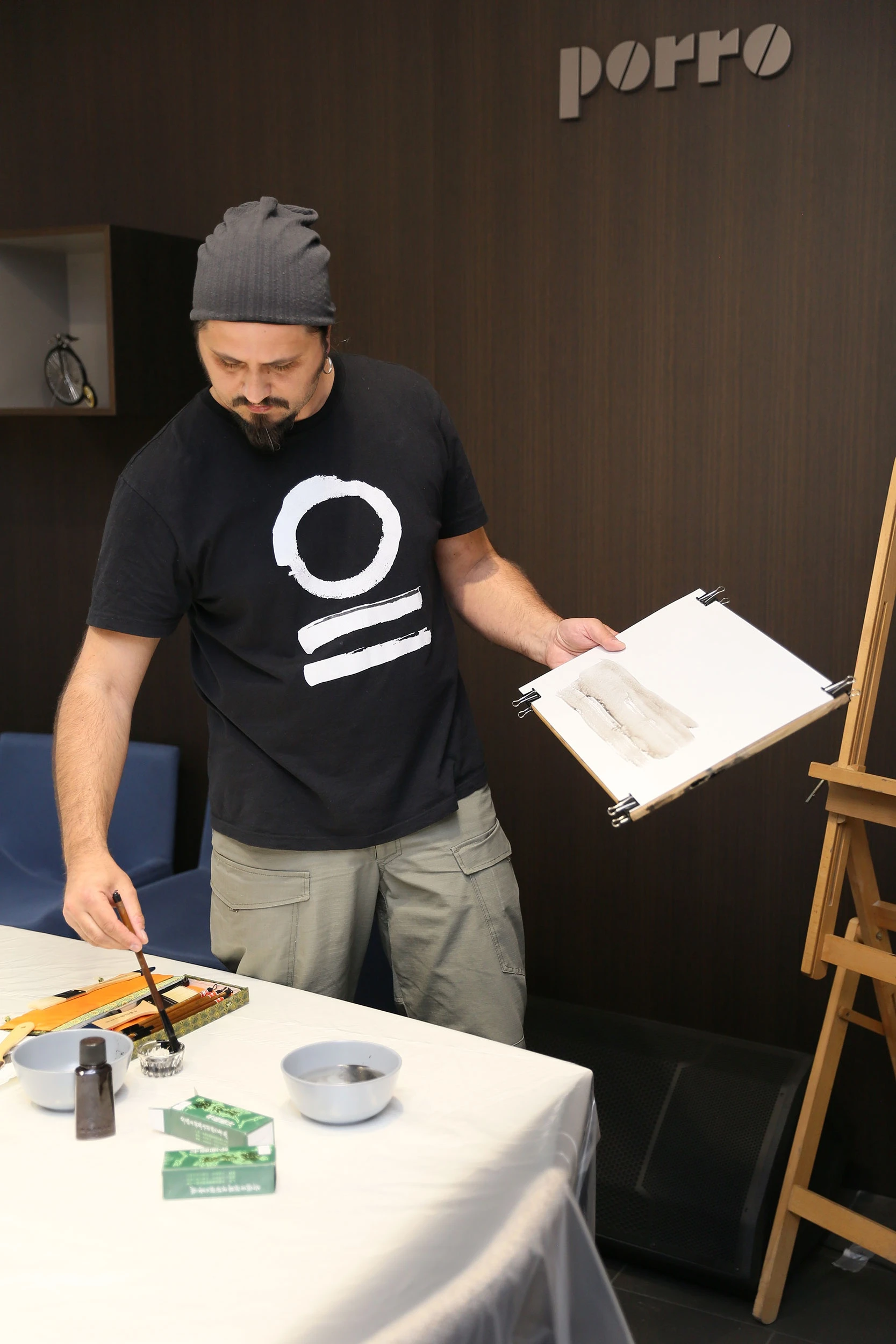 Specializzato nella tecnica dell’inchiostro giapponese, e in un lavoro che sintetizza arte e design, ha coinvolto il pubblico in un workshop di pittura, culminato nella premiazione degli elaborati più belli.