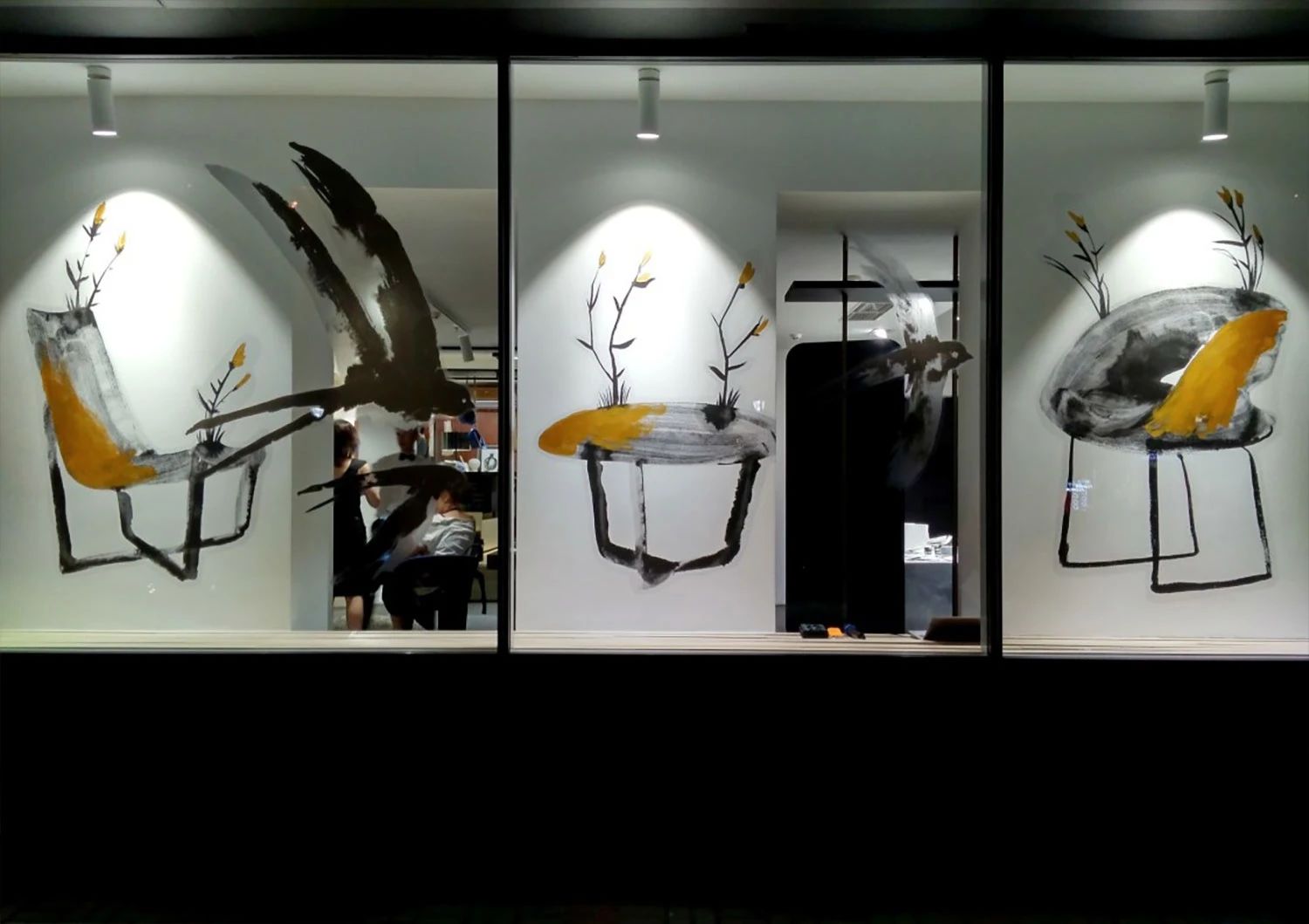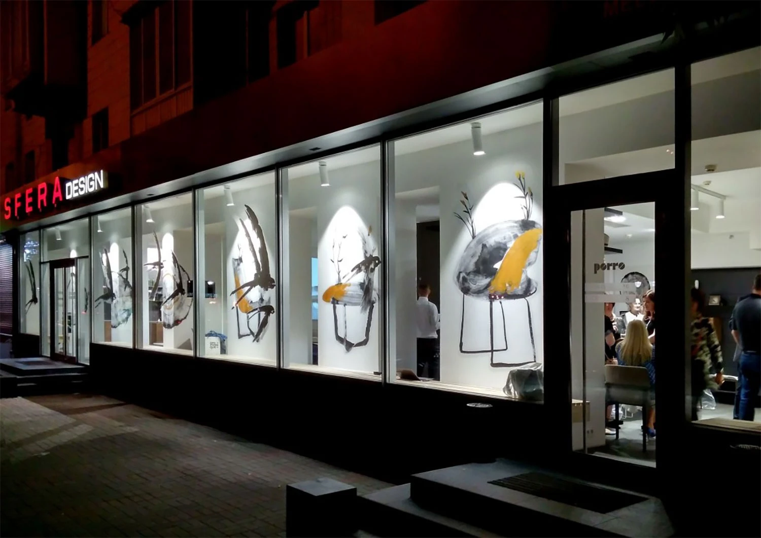 Ospite della serata il pittore Nikita Vlasov, artefice delle suggestive vetrine del negozio, che hanno reinterpretato i prodotti più celebri del catalogo Porro in chiave naturale.