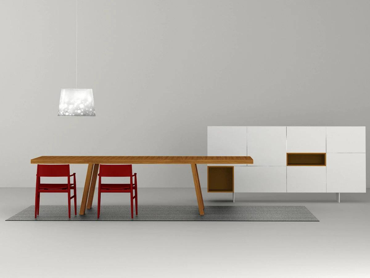 Disponibile anche in un’accesa colorazione rossa Neve, dalle linee rigorose ma morbide, reintrerpreta in chiave contemporanea la classica sedia in legno. Se la struttura di sostegno si caratterizza per un tracciato di linee nette dai diversi spessori, leggermente inclinate a conferirle una piacevole aerodinamicità, la rotondità delle gambe a fuso e la tenue curvatura dello schienale e della seduta sospesa addolciscono la sua figura, rendendola estremamente intima e accogliente. L’utilizzo del frassino tinto nero, tinto rosso, tinto mongoi o naturale accentua il suo grafismo e allo stesso tempo ne assicura l’eleganza, conferendole un aspetto vintage anni Cinquanta. Riprendendo forme e sensazioni insite nella memoria collettiva Neve, disponibile con e senza braccioli, non è un oggetto pensato per stupire, ma per inserirsi in armonia in ogni contesto come se ne fosse sempre stato parte irrinunciabile.