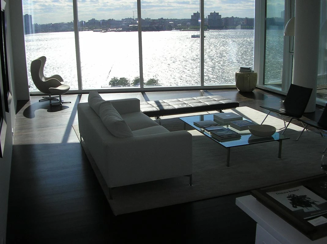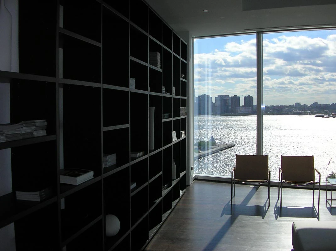 Grazie alla posizione privilegiata del sito, ogni appartamento gode di una vista panoramica, da un lato sul west village che circonda l’edificio con le sue caratteristiche case di mattoni e ciottoli, dall’altra sul fiume fino alla riva opposta del New Jersey.