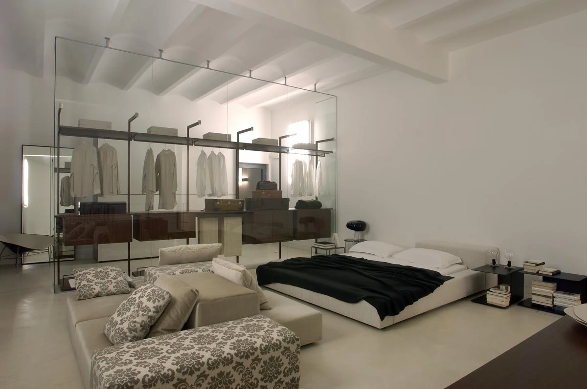Salendo al piano superiore, si accede invece alle stanze da letto, regno indiscusso di Storage, il sistema di armadi e cabine attraverso il quale Porro esprime al 100% la propria personalità.