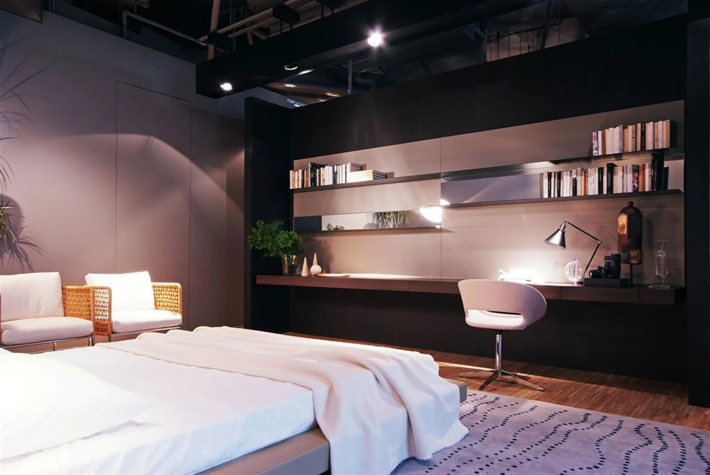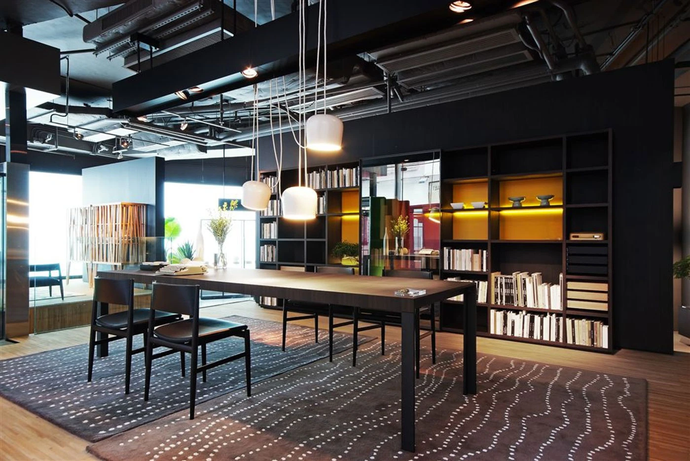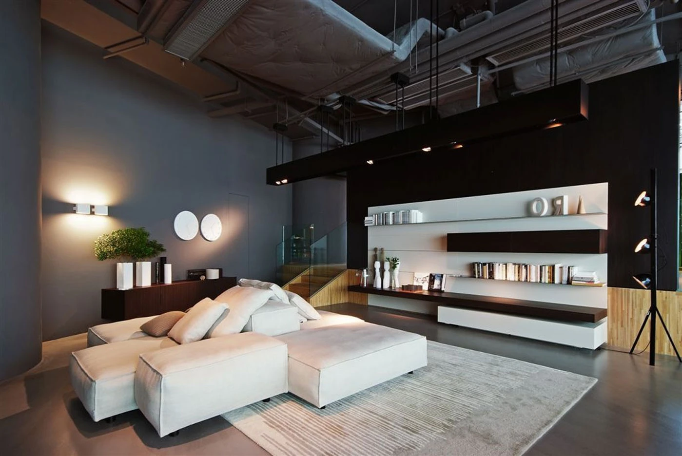 I 3 sistemi aziendali e i prodotti più celebri in collezione si susseguono in un’area espositiva di 700 mq distribuita su due livelli comunicando l’idea di una grande abitazione contemporanea dal look sofisticato, composta da 4 ambienti living, 3 ambienti dining, 2 stanze da letto e il guardaroba, nuovo cuore della casa.