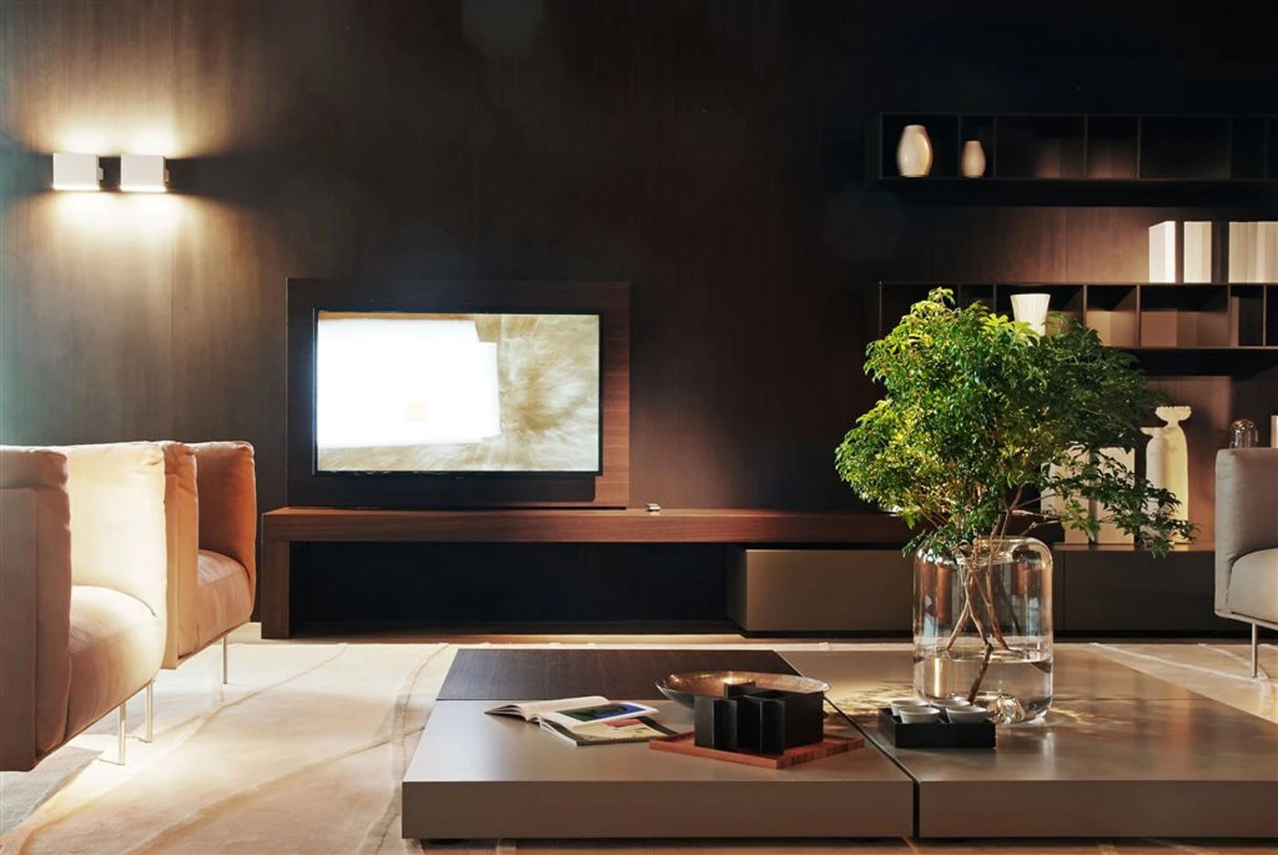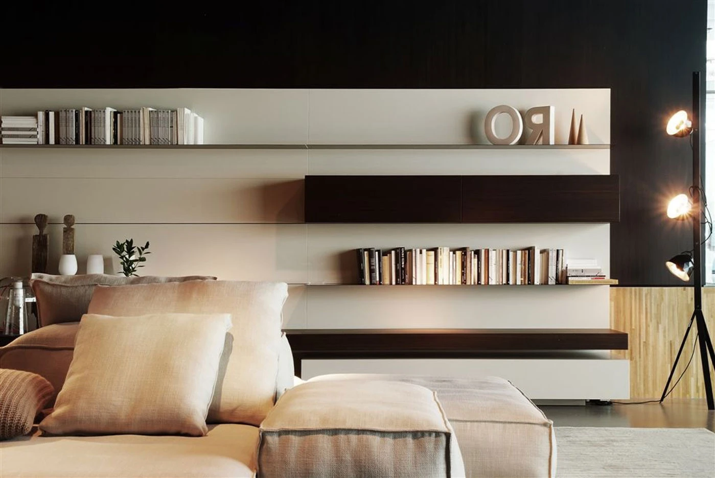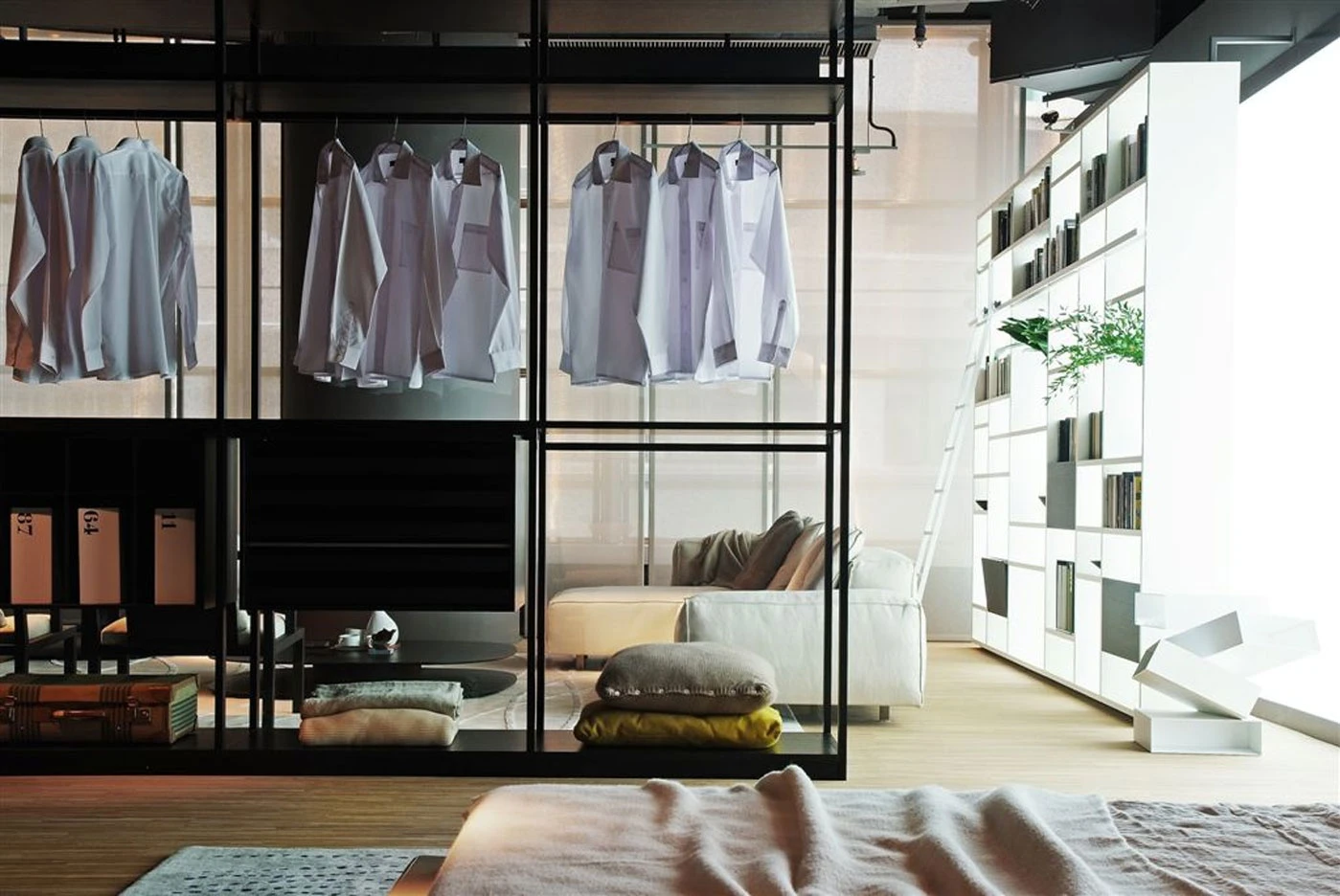 I 3 sistemi aziendali e i prodotti più celebri in collezione si susseguono in un’area espositiva di 700 mq distribuita su due livelli comunicando l’idea di una grande abitazione contemporanea dal look sofisticato, composta da 4 ambienti living, 3 ambienti dining, 2 stanze da letto e il guardaroba, nuovo cuore della casa.