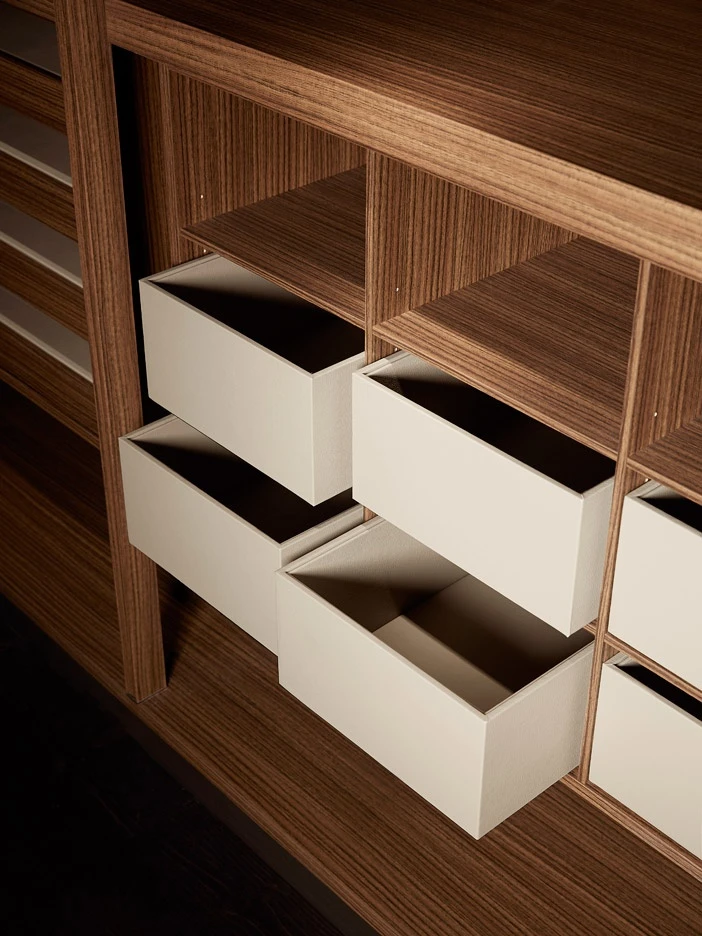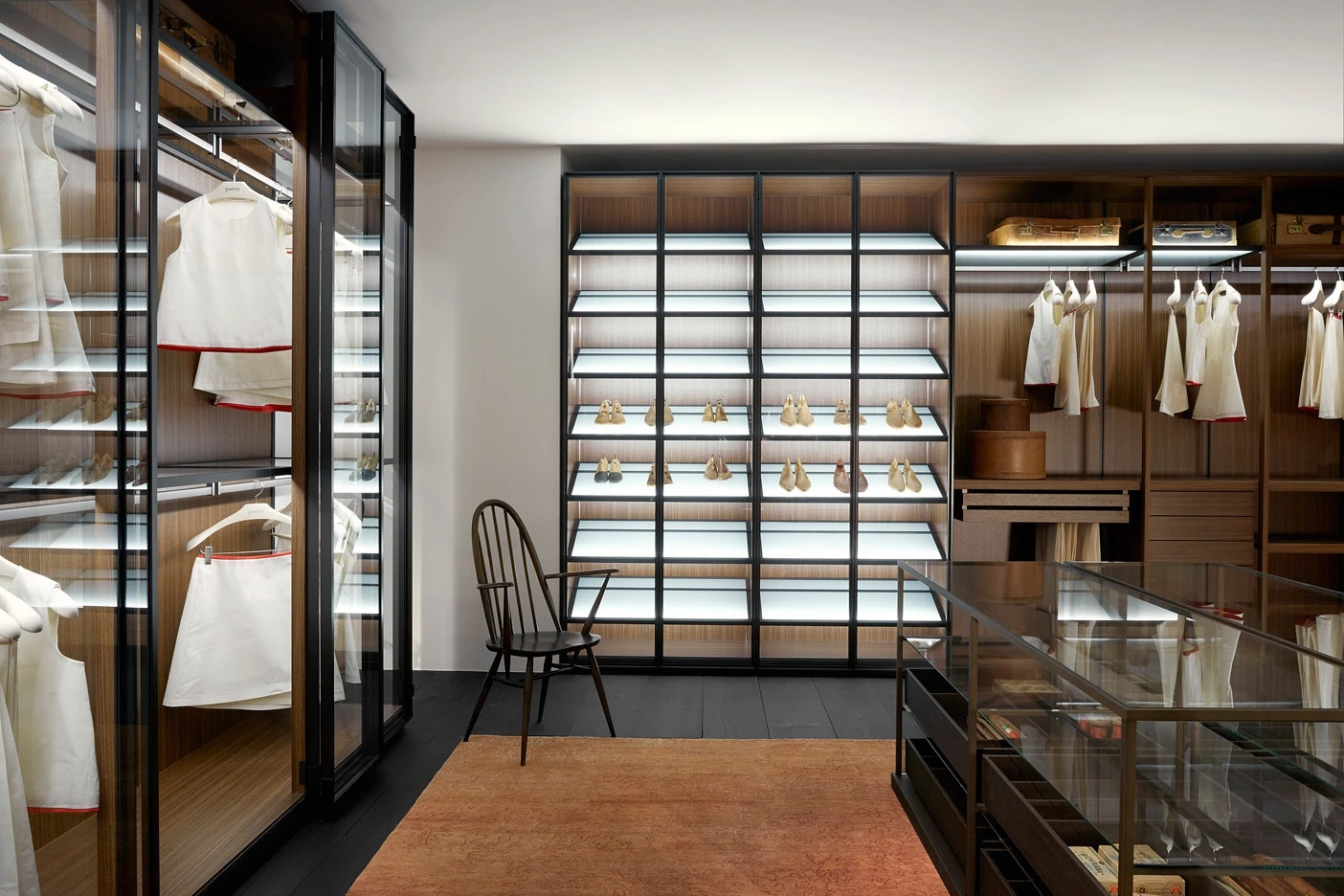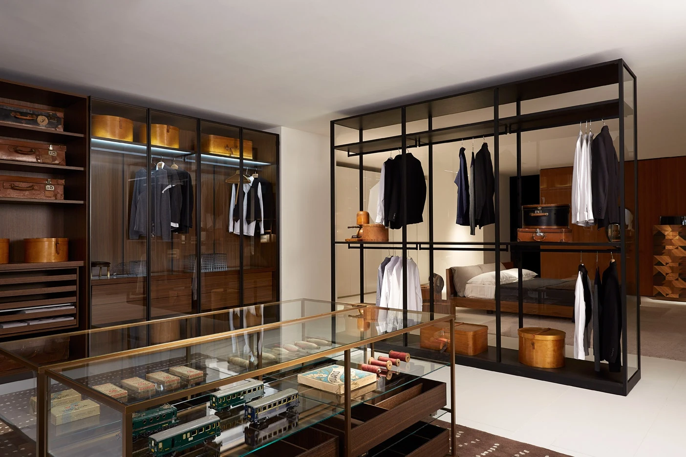 Storage è il sistema modulare Porro per la zona notte, in grado di contenere e di mostrare gli oggetti riposti trasformandosi con naturalezza da armadio a cabina. Così prezioso ed accogliente da diventare un vero e proprio rifugio dove sostare e rilassarsi tra il calore del legno, l'armadio Porro si è trasformato nel tempo da vano tecnico a luogo emozionale, a cui riservare sempre più spazio.