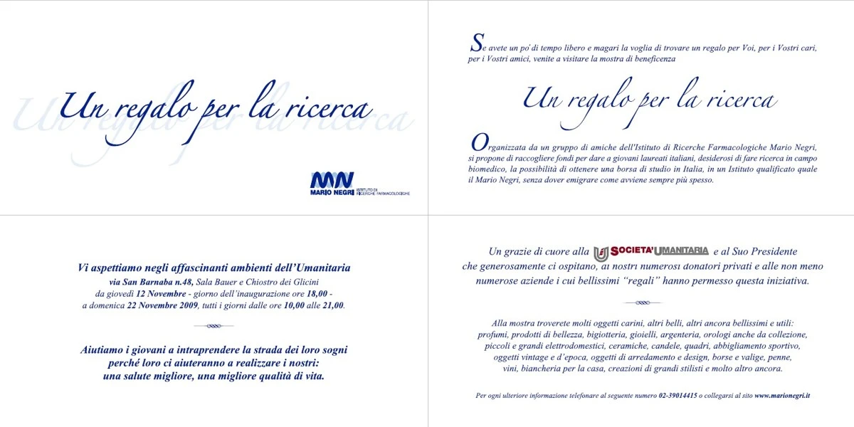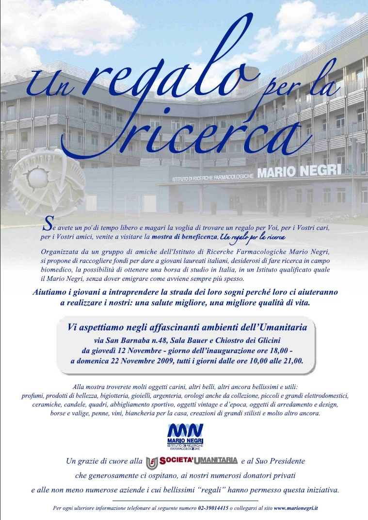 Nei suggestivi ambienti dell’Umanitaria (Sala Bauer and Chiostro dei Glicini) di via S. Barnaba n.48 a Milano, nell’ambito della mostra benefica “Un regalo per la ricerca”, dal 12 al 22 novembre 2009 sarà invece possibile acquistare la divertente e colorata poltroncina forata Truffle in materiale termoplastico a sostegno della ricerca ascientifica di giovani laureati italiani all’Istituto Mario Negri.
