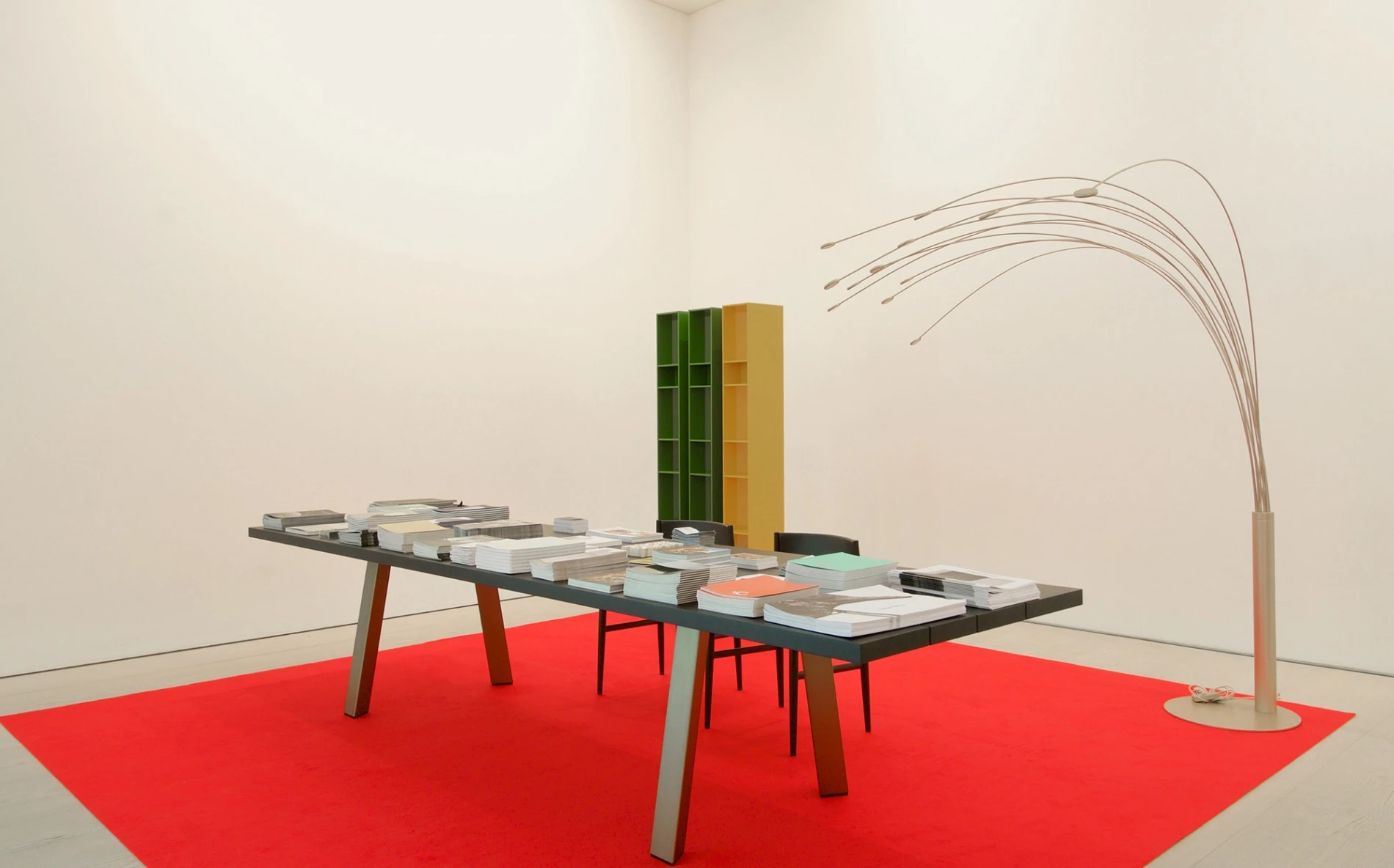 Nell’ara espositiva, il tavolo Metallico rosso antico incanta per la particolare finitura superficiale ottenuta tramite una verniciatura catalizzata ad alto spessore, e alle successive fasi di levigatura e ceratura realizzate a mano, per far emergere una vibrante colorazione, con i giochi di luci e ombre che ricordano la pittura a olio. Il suo disegno si caratterizza per la leggerezza di piano e gambe, realizzate in alluminio massiccio, spessore 12 mm. Il dettaglio ricercato della congiunzione tra gamba e piano mostra la forza della tecnologia utilizzata che permette di ottenere linee rigorose e spessori ridotti: un connubio di straordinaria eleganza. La accompagna Voyage, la sedia dalle linee precise che prende ispirazione dai pezzi anni ’50, costituita da una struttura a vista in massello di acero tornito, con un rivestimento in cuoio che calza perfettamente sulla struttura e dà forma invece a schienale e seduta, caratterizzati da comfort ed ergonomia. Pensata per riporre ed esporre ricche collezioni, Ex-Libris è una vetrina preziosa al tatto e alla vista, con fianchi e fondali in cristallo, montanti in alluminio verniciato nero e base e top in melamminico black sugi, texture lignea scura dalle venature marcate, un’estetica industriale impreziosita dalla finitura sofisticata da accarezzare con le mani.