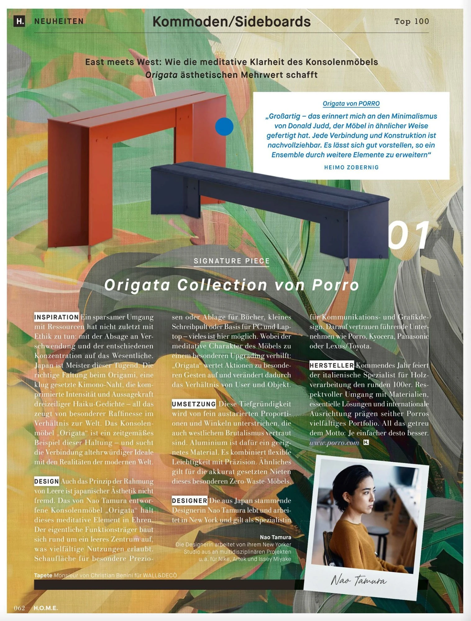 Il fascino sartoriale della composizione Modern + Load-it, caratterizzata dalla libreria Load-it di Wolfgang Tolk con schienale in canneté naturale e ripiani in acciaio, dal piano sospeso Modern in hemlock tinto nero e dalle ante a ribalta in arancio zucca, incontra le sedie Romby di GamFratesi con base girevole in massello di frassino naturale e seduta rivestita in tessuto, eleganti e senza tempo. Sfoglia tutto il numero per trovare numerosi accenni alle novità e all’essenza del design di Porro.