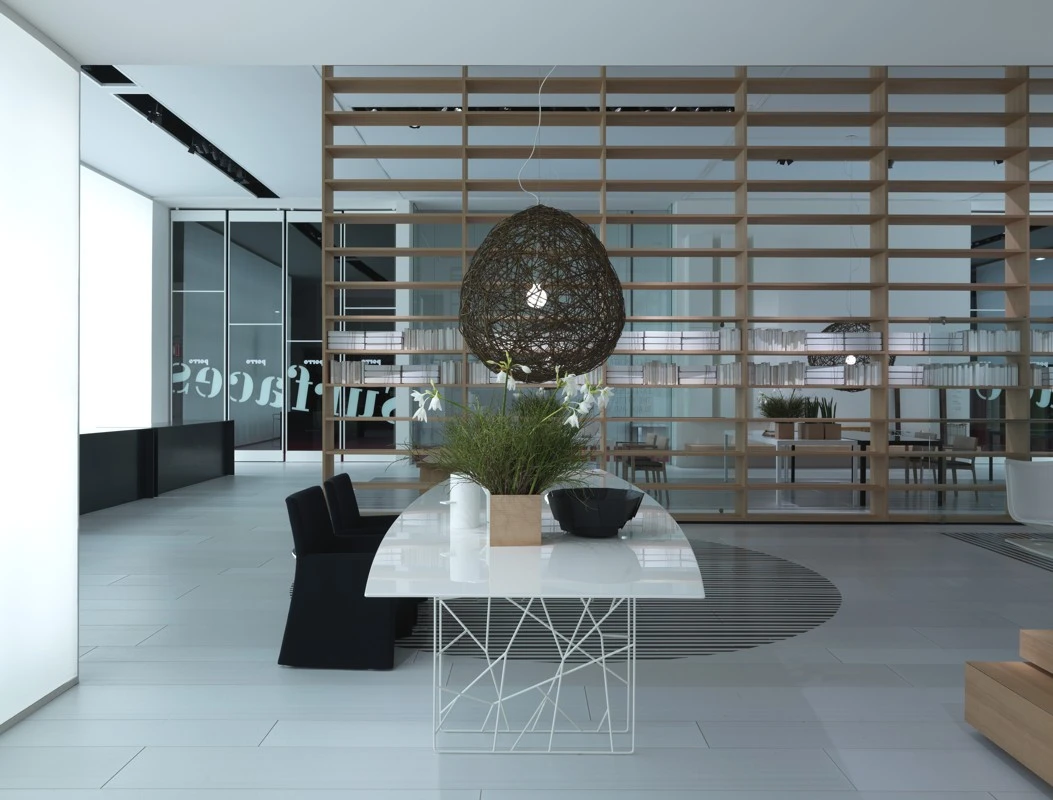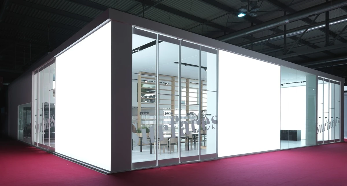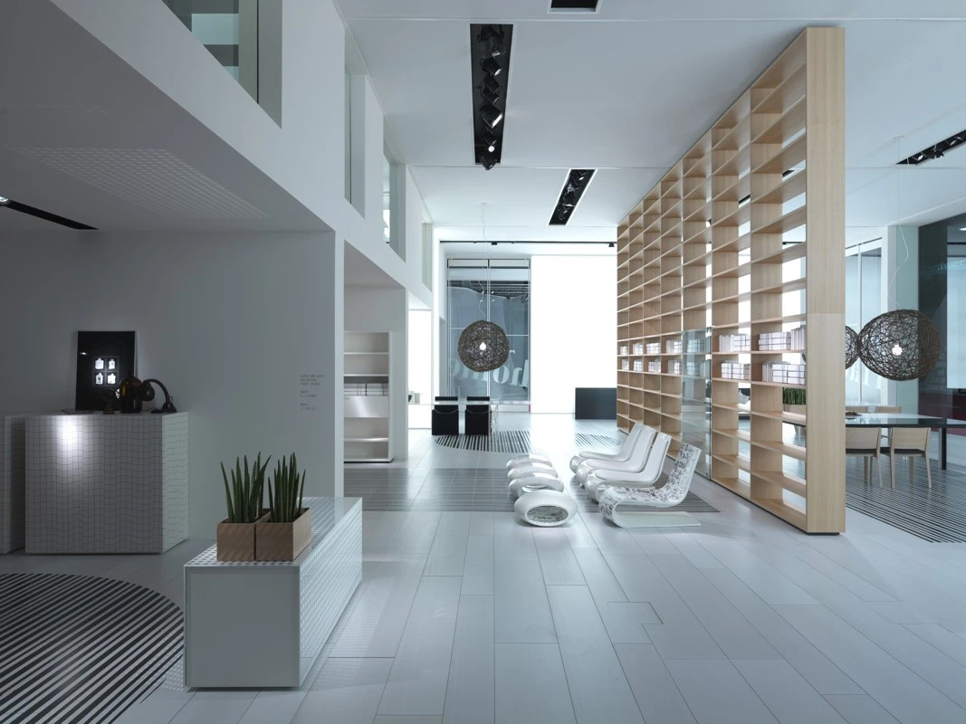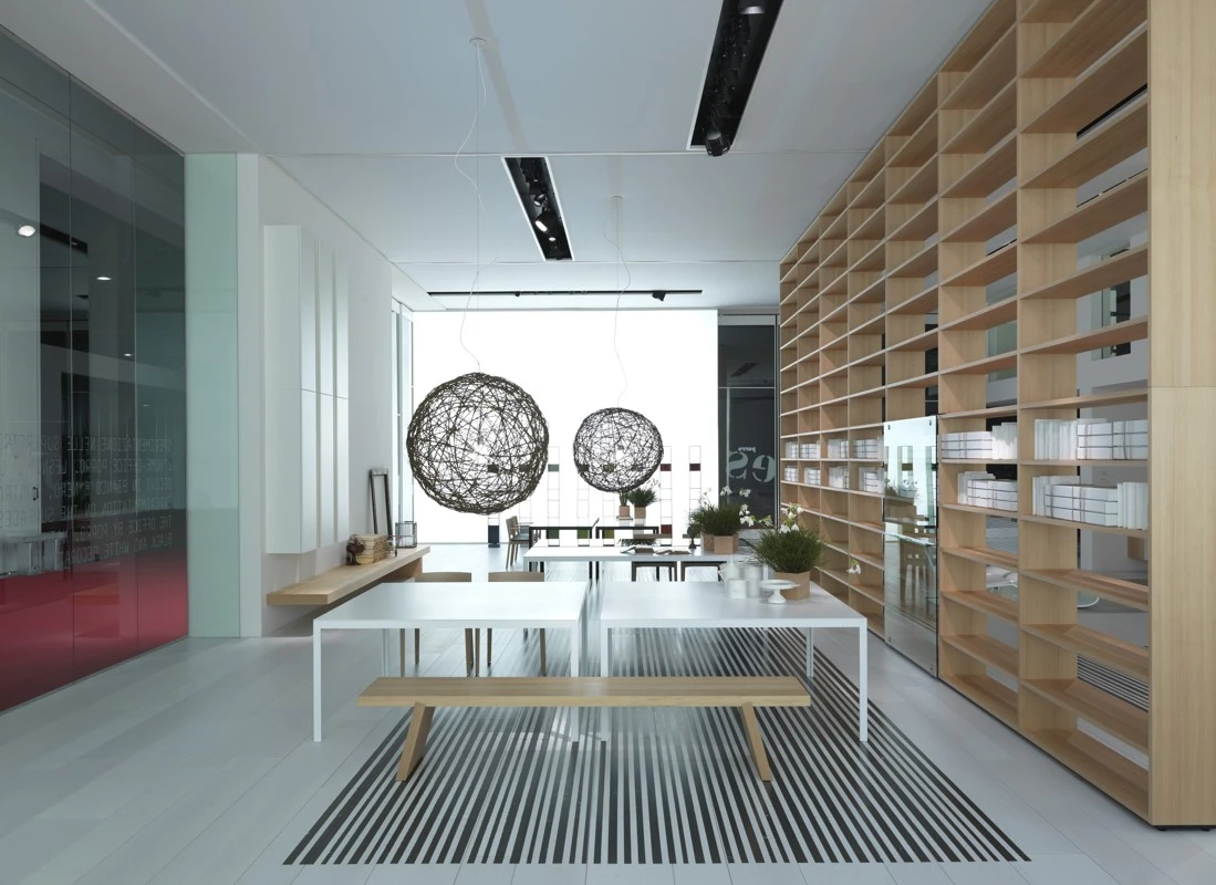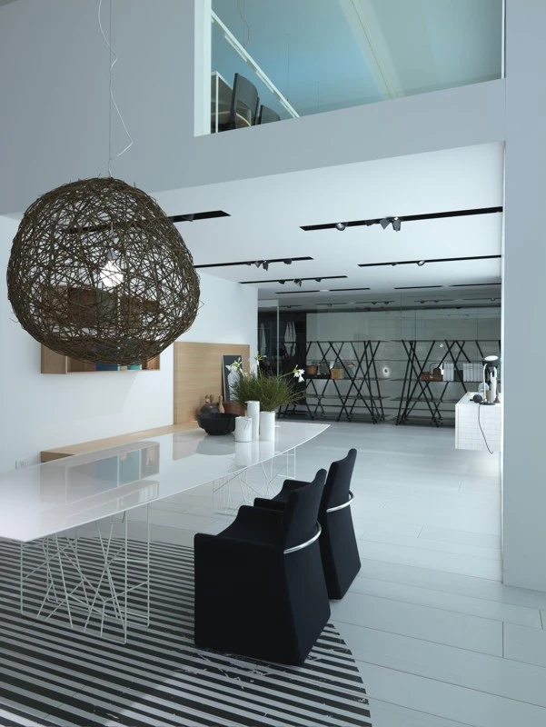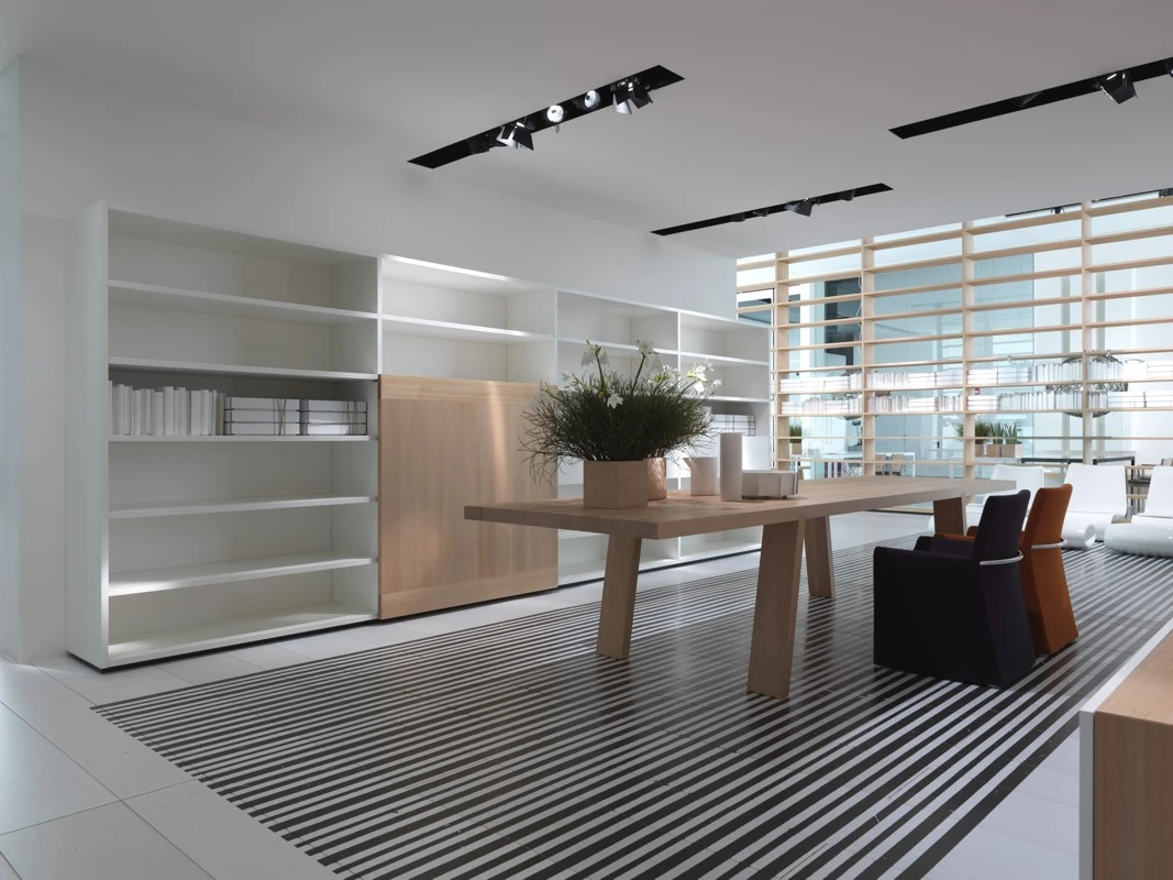 Per l’allestimento dello stand Porro al Salone del Mobile 2009, Piero Lissoni opta per una riduzione ulteriore del proprio sistema di segni e delle geometrie, ad ottenere, in un processo estremo di purificazione, uno spazio di pura materia e luce.