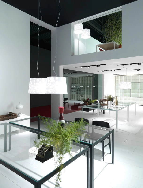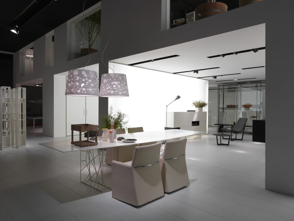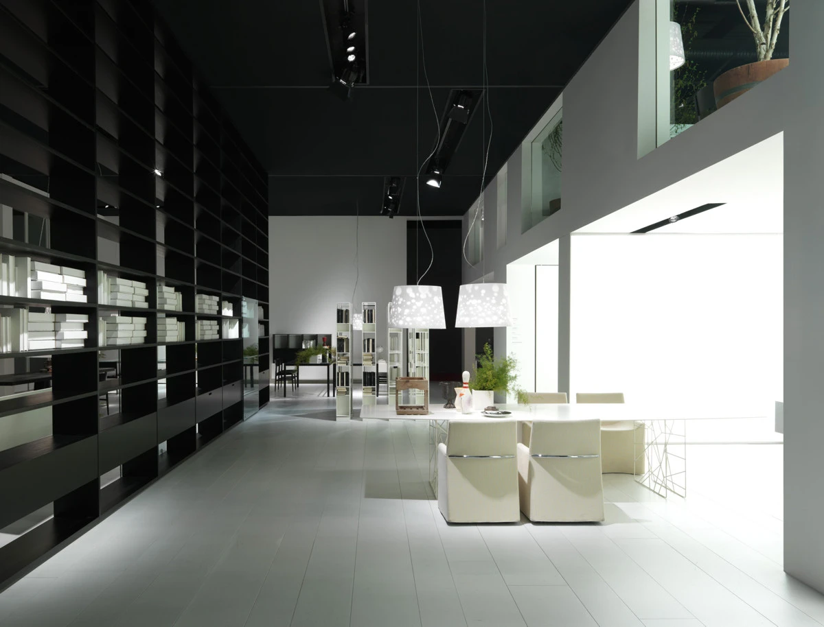 Ad eccezione di pochi calibrati tocchi di nero e di grigio, lo stand Porro 2010 ideato da Piero Lissoni sceglie il bianco, colore dell’astrazione e dell’identità poetica, per rivestire le proprie forme e creare un ambiente di vita fluido e incontaminato, non invadente né rumoroso.