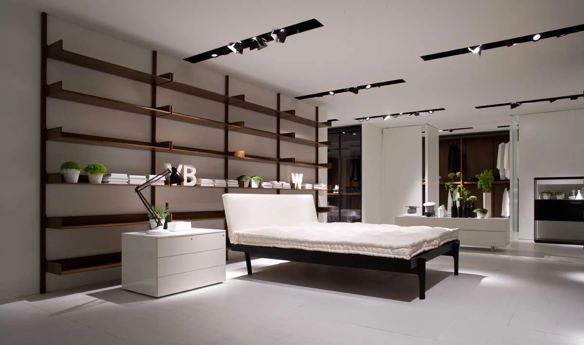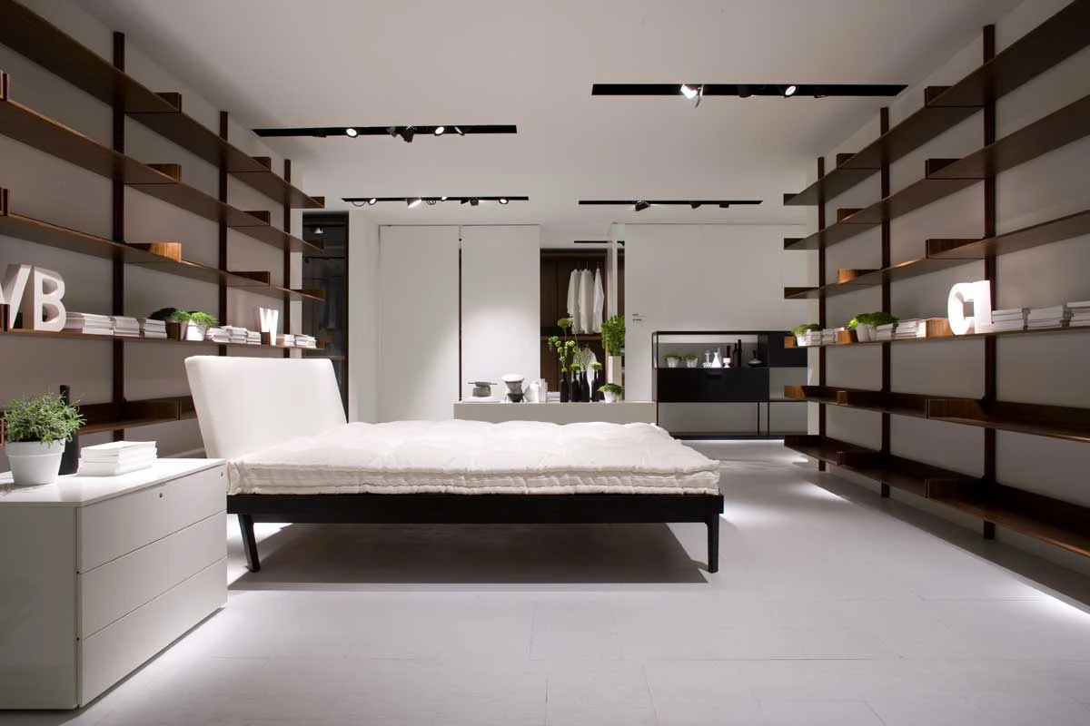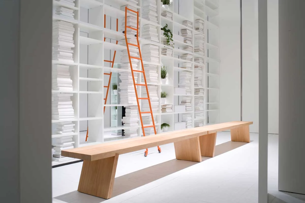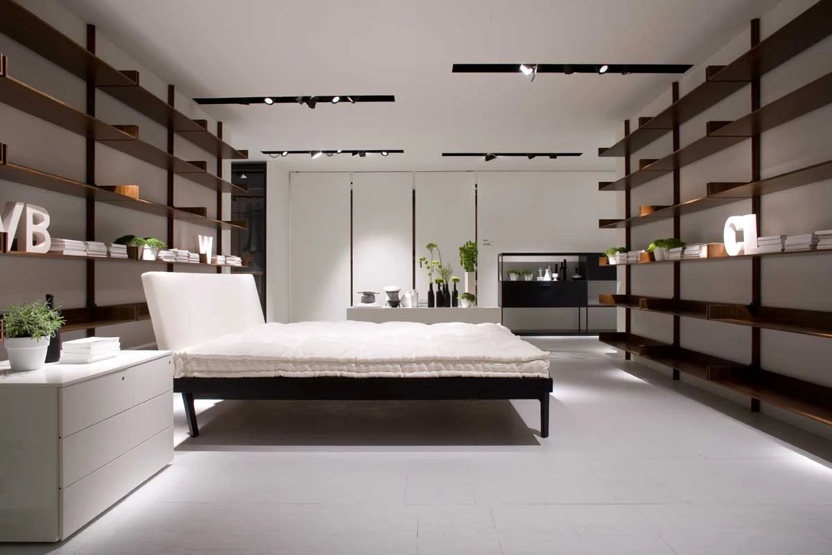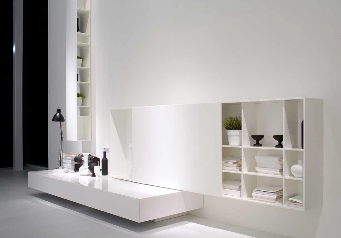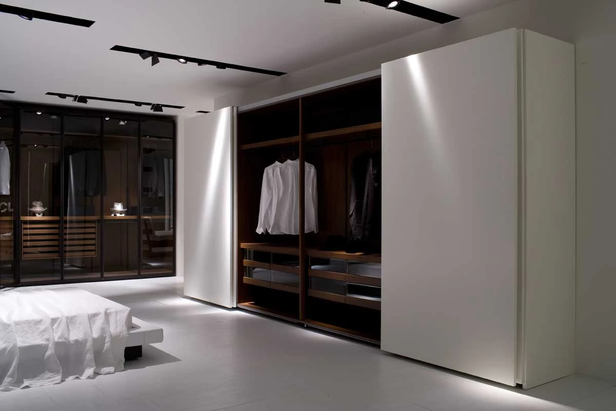 Se la cromia decisa della laccatura domina nelle partizioni in movimento Pivot e nelle nuove composizioni per la zona living dei sistemi Modern e System NXT, le tenui sfumature del legno in essenza Hemlock arricchiscono la semplicità del segno della nuova panca Groove, mentre il vetro bianco colorato in pasta è utilizzato per la nuova libreria verticale Sidewall. Le screziature del marmo sono invece protagoniste del tavolo Yule, in contrapposizione alla morbidezza della pelle imbottita che riveste l’avvolgente seduta H.chair.