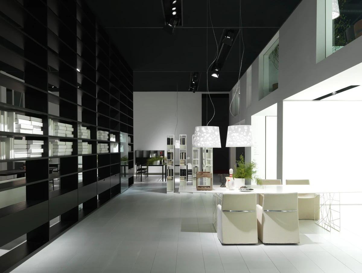 Versatile, intelligente, flessibile: System entra nella casa assecondando la personalità di chi la abita, le sue inclinazioni e il suo stile di vita. Polivalente ed eclettica per il numero di funzioni che assolve, può essere destinata a libreria, contenitore di media tecnologia, area studio o anche come elemento per suddividere ambienti e creare superfici attrezzate.