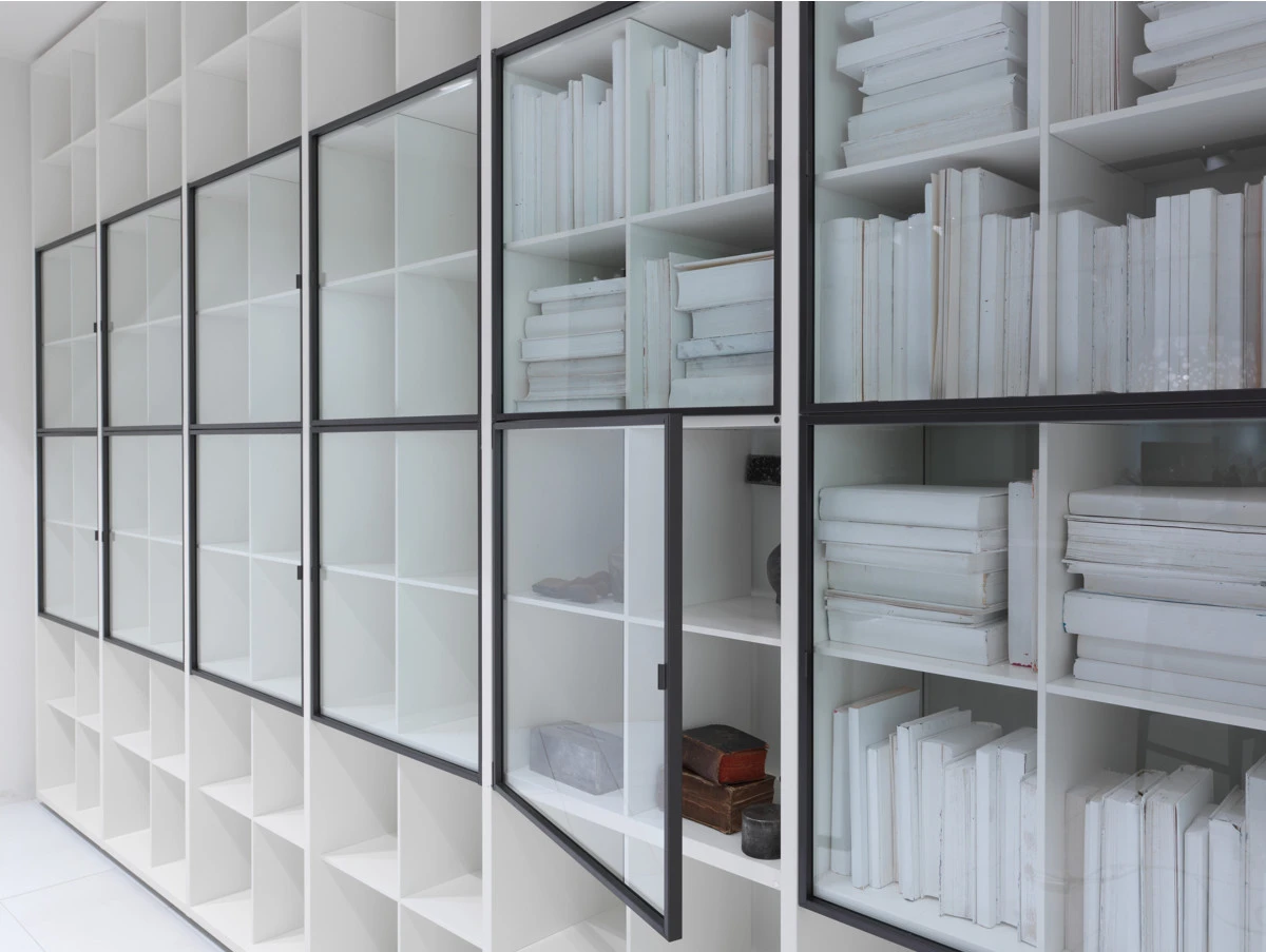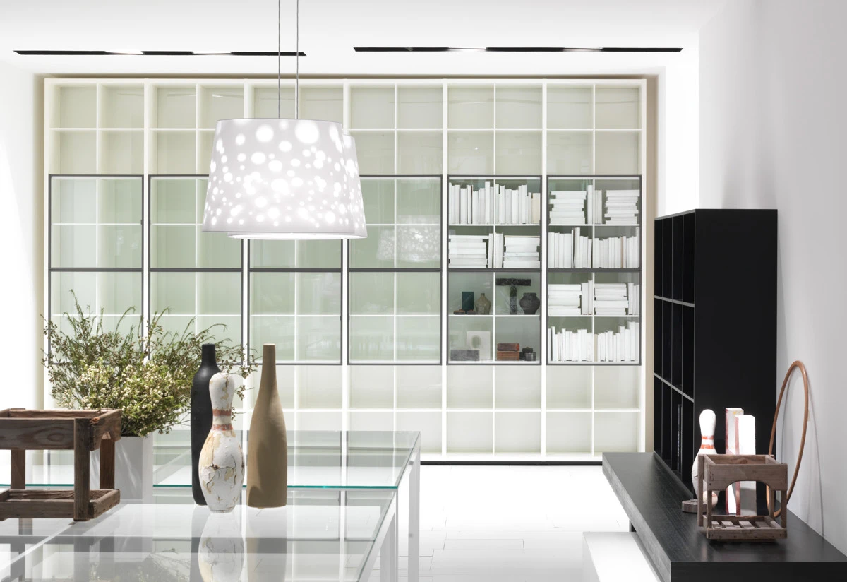 Virando con decisione nella scala cromatica, System è inoltre presentata in chiave all white, con struttura in laccato opaco nella nuova colorazione bianco moon, scandita dalle nuove crociere interne che permettono un sottoutilizzo più razionale di ciascun modulo: un ordine perfetto, da lasciare interamente a vista grazie ai fondali ed alle nuove ante in cristallo trasparente, con profilo iron.
