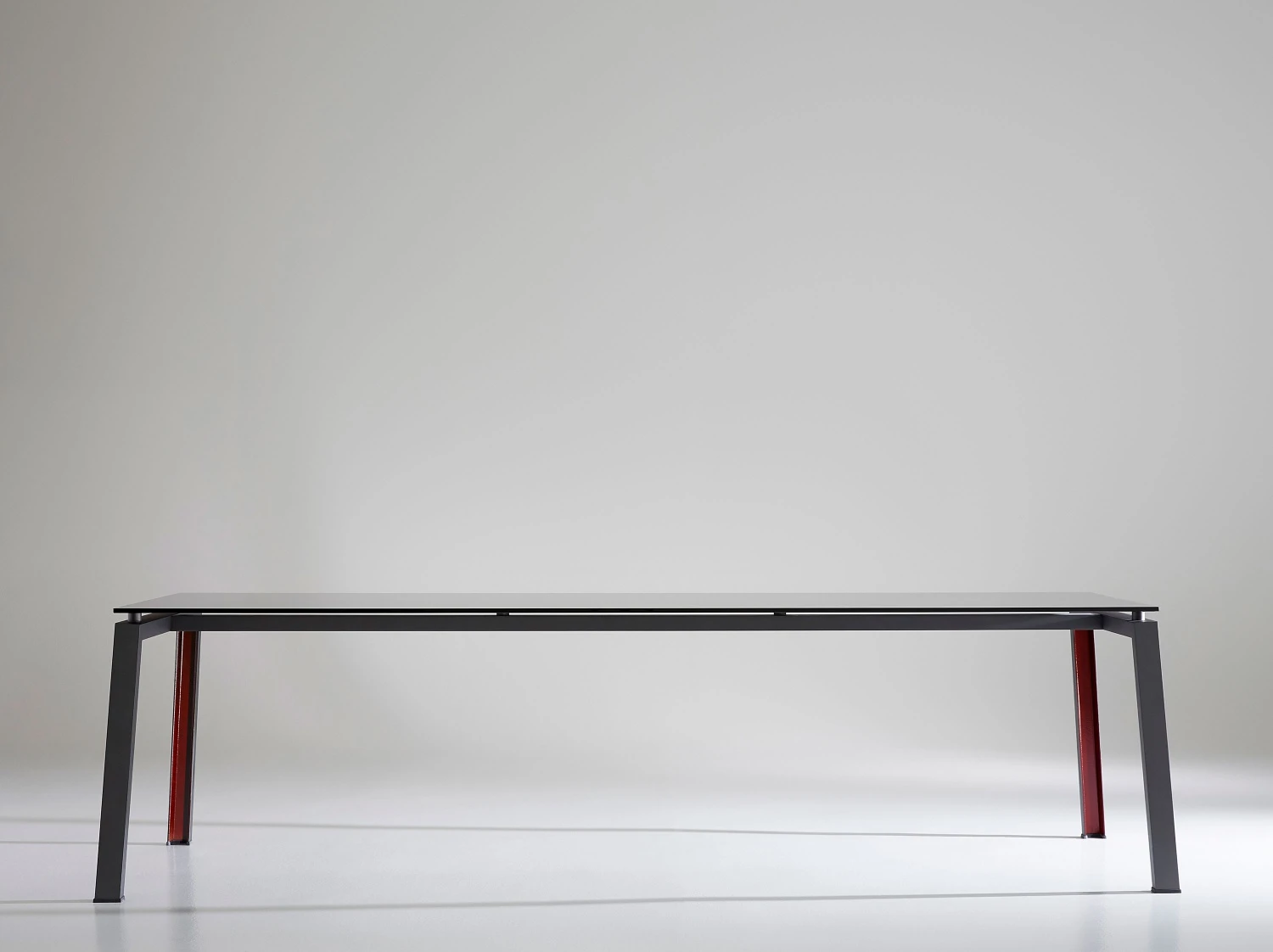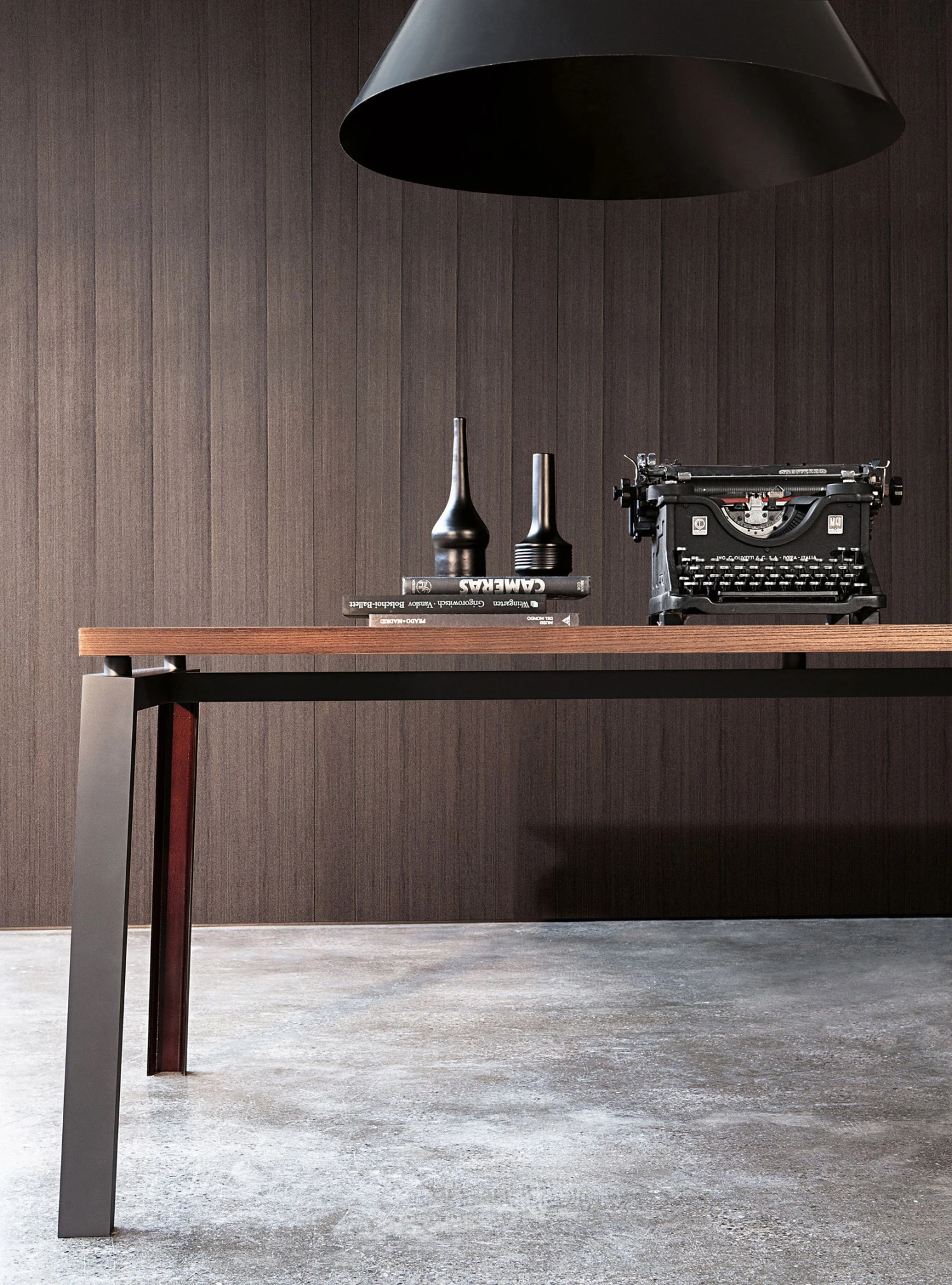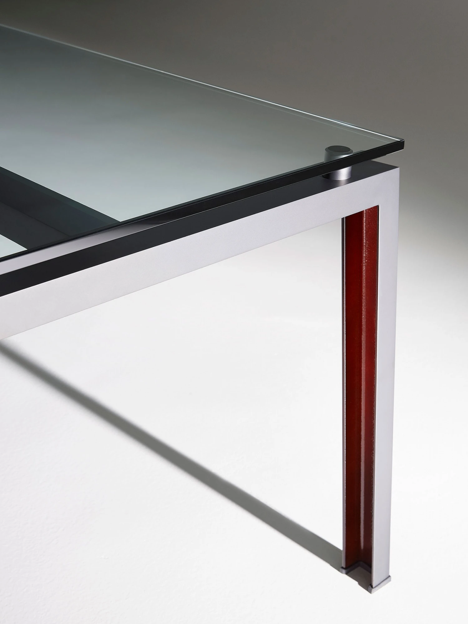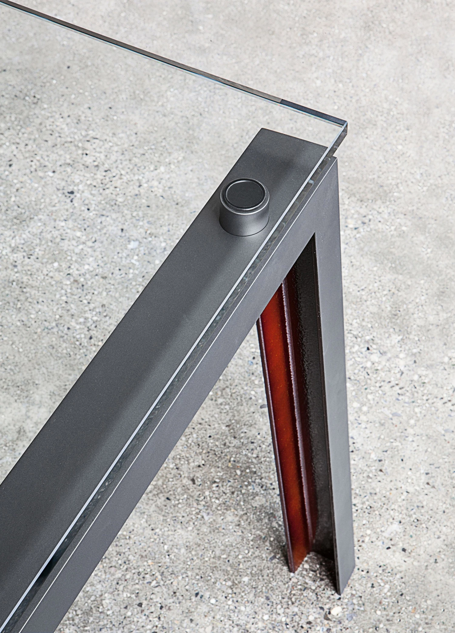 Funzionale, tecnologico, multiuso, Ipe è il tavolo dall’estetica raw, con piano in cristallo o legno e gamba ad U in ferro verniciato nero. Silhouette austera e industriale, si concede un vezzo: l’interno della gamba è color ruggine, un ingrediente segreto, pensato per stupire.