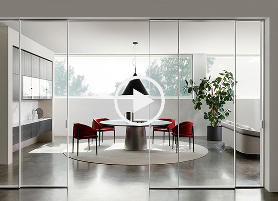 “Ecco, mettiamola così: se dovessi definire Glide in questo momento le definirei come se fossero delle finestre all’interno della casa, delle partiture che permettono alla luce di muoversi all’interno della casa”. Piero Lissoni descrive Glide, le nuove porte scorrevoli che creano e connettono gli ambienti Porro, integrandosi completamente con tutti i sistemi aziendali. Ampie quinte su misura caratterizzate da profilo ad L in metallo che incornicia diversi materiali: non è un semplice divisorio ma è un elemento che dialoga con quella che è l’architettura classica della casa.