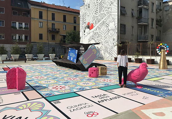 During the Milan Design Week from 4 to 10 September 2021, an oversize installation inspired by a classic board game took place at the Giardino delle Culture located in via Emilio Morosini 8 (Municipio 4).