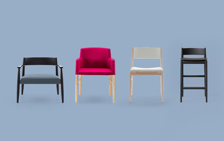 Geometrical rigour and excellent workmanship are the fil rouge that links the Neve chair, the Pioggia upholstered chair,