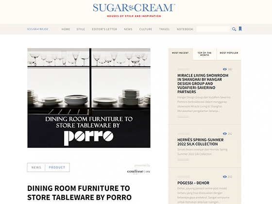 Conceived by the editor in chief Janto Wihardja as a fabulous place to indulge in the celebration of life, www.sugarandcream.co features Porro’s dining room furniture.