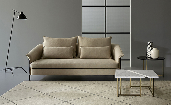 the craftsmanship of classic Danish furniture and the conceptual process of Italian design. Born with the Traveller daybed, an iconic piece of furniture that plays on the rigorous combination of the essentiality of metal,