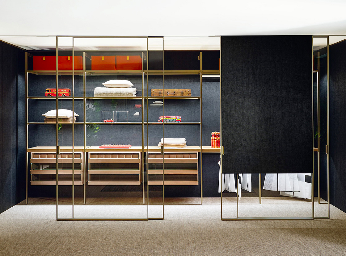 As the epitome of Porro’s customisation abilities, Storage system of wadrobes and walk-in closets experiments this year with an unprecedented freedom of combination.