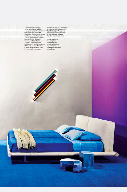 Il nuovo letto Iro di GamFratesi in frassino latte è protagonista nello shooting “Industrial Glam” di Living Corriere Design, curato da Daria Pandolfi e fotografato da Omar Sartor,