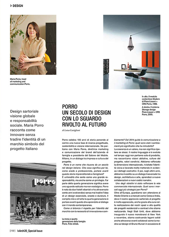 Maria Porro racconta a IOArch l’anniversario dell’azienda di famiglia, che ha attraversato cento anni senza mai tradire l’idea di un design essenziale,
