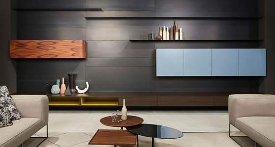 Ossatura dello spazio Porro, i 4 sistemi aziendali - perfezionati di anno in anno in stretta collaborazione con Piero Lissoni - offrono una trama in cui muoversi liberamente originando configurazioni mutevoli...