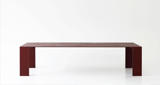 La ricerca materica di Porro protagonista anche nello showroom Kvadrat di corso Monforte 15: il tavolo Metallico in rosso “antico”, finitura metallica dal colore non piatto ma ricco di sfumature e texture, in grado di creare un senso di profondità e di lucentezza come le pitture ad olio del Seicento, dialoga con i tessuti del brand celebre brand danese.