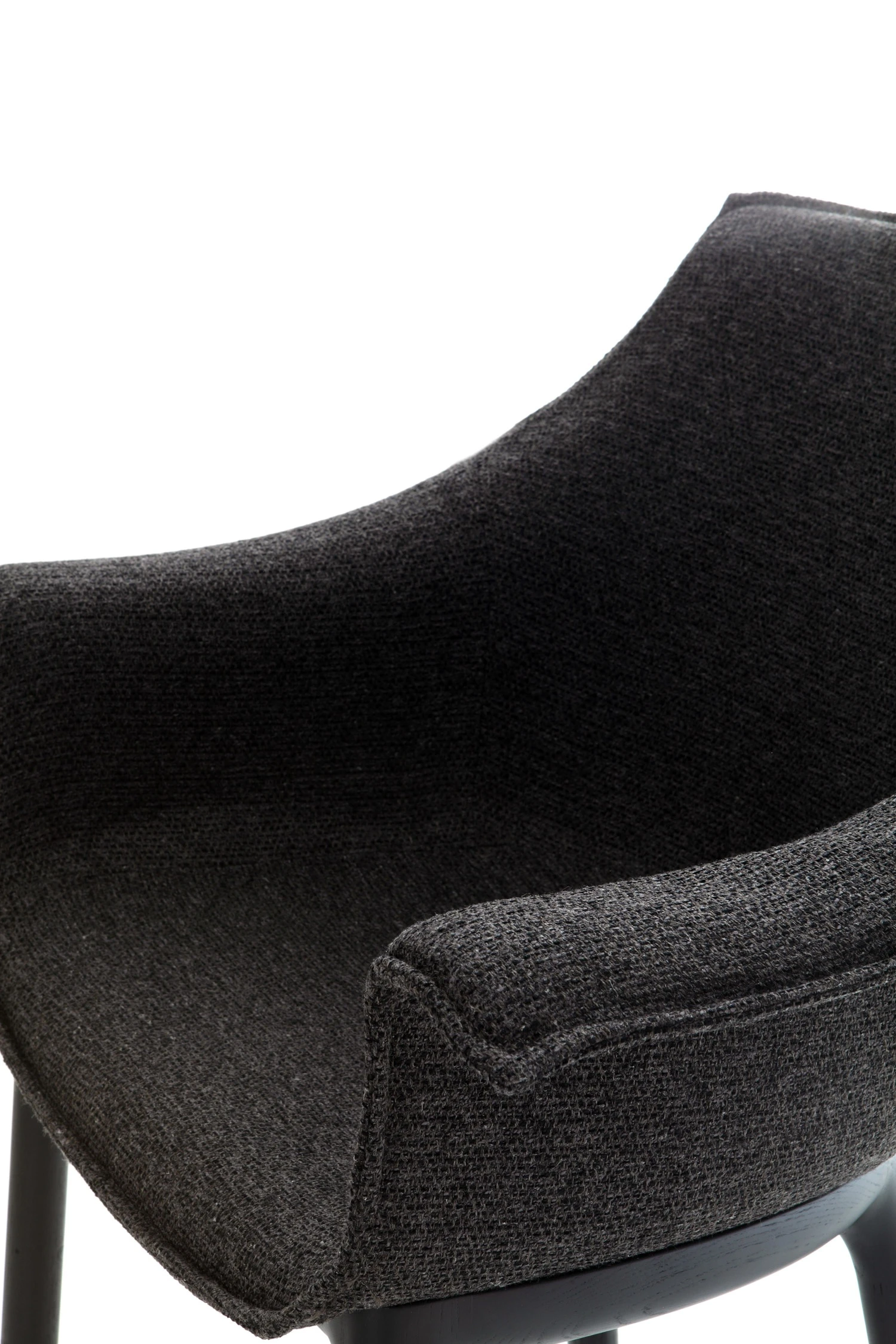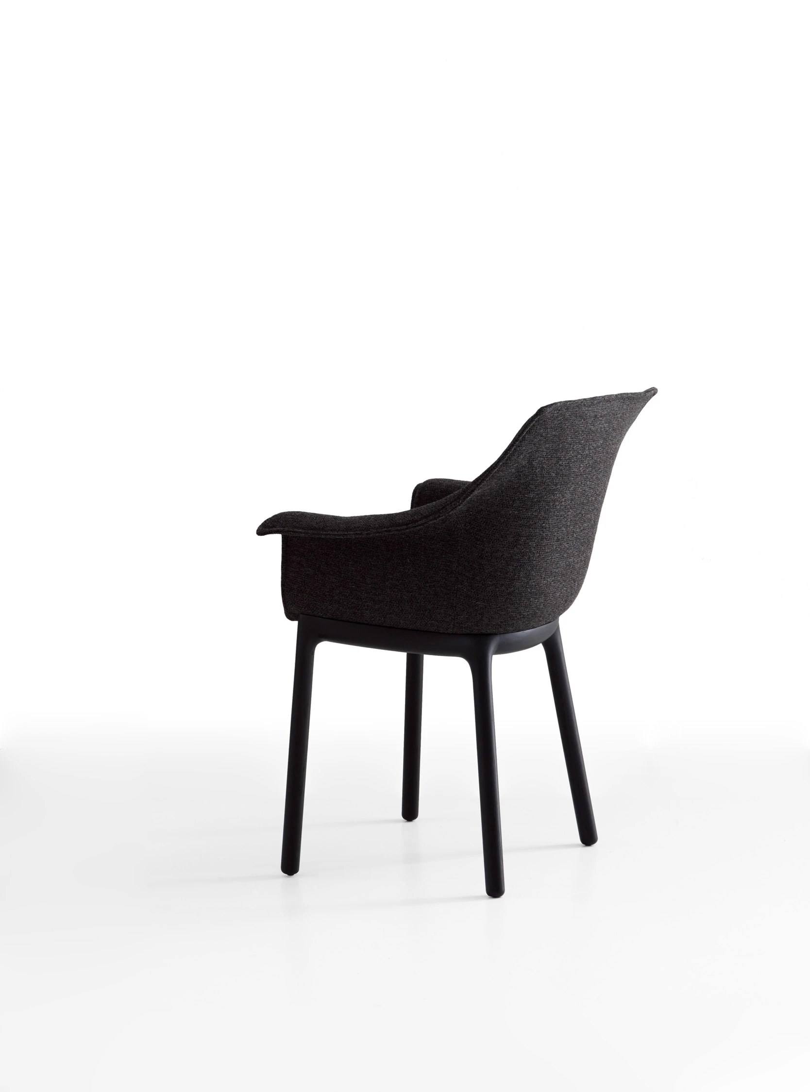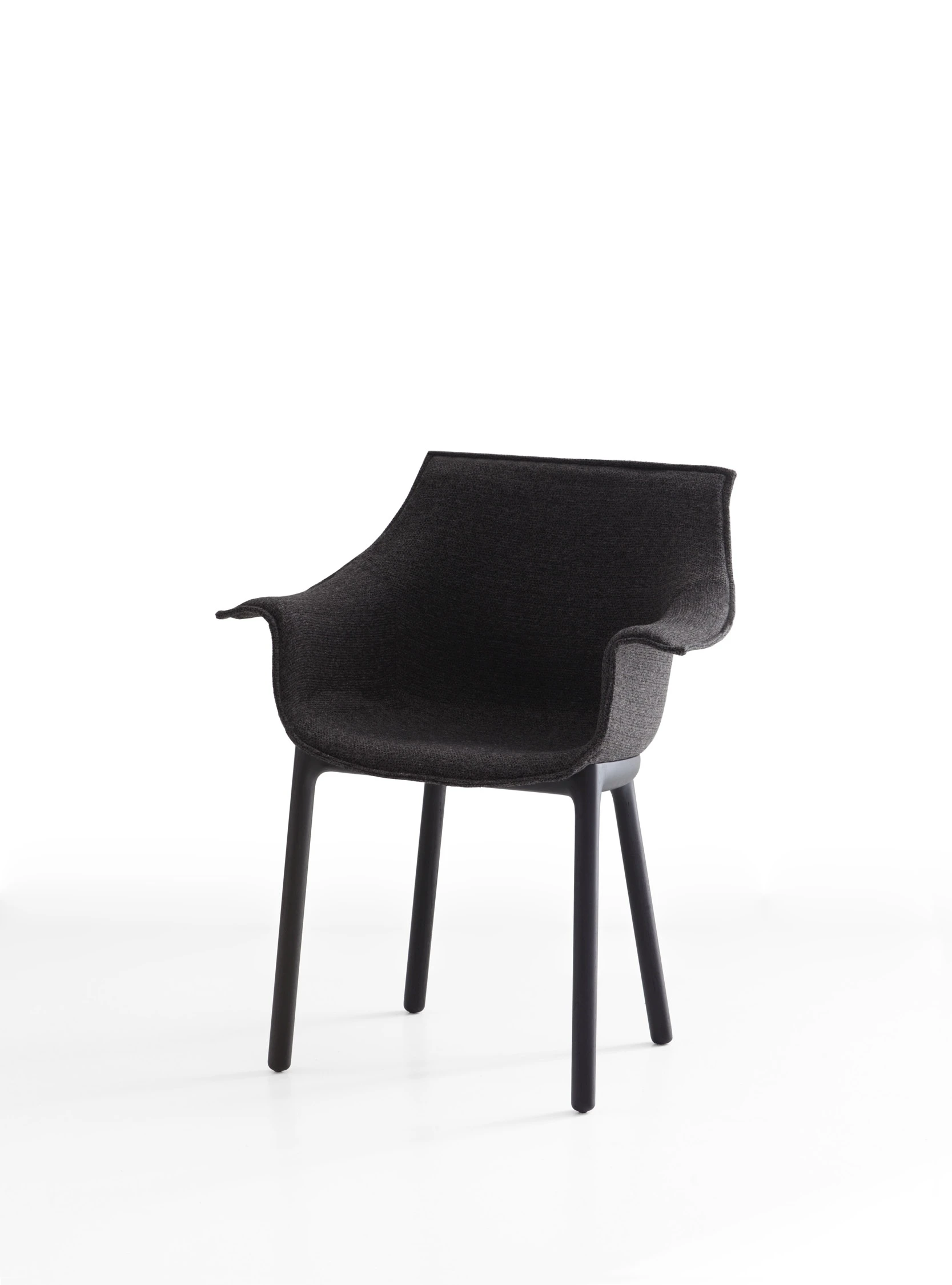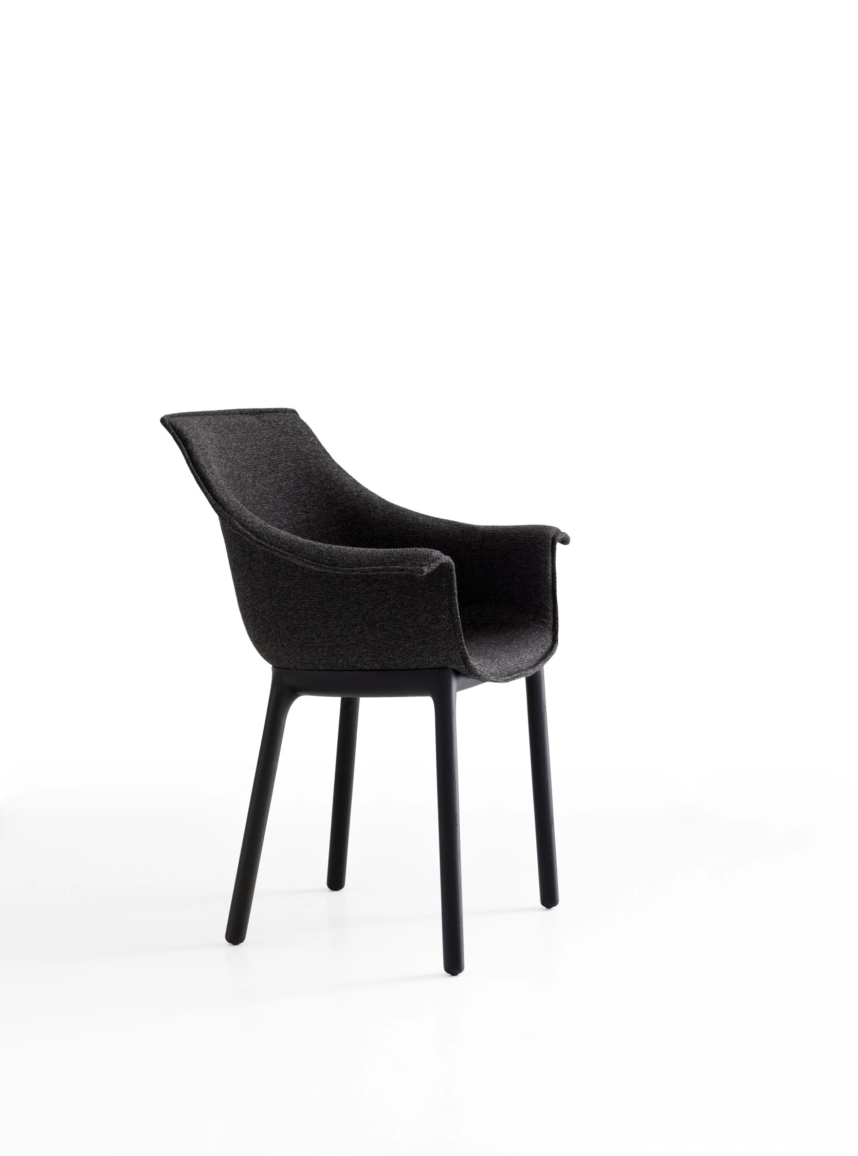 The concept of freedom denotes the dining room Draped Chair from the Swedish Front designers, the duo of Anna Lindgren and Sofia Lagerkvisk who for 8 years have been the confirmed spokeswomen of Porro style. Fabric softly resting on a bucket seat with a wooden base rises up with graceful folds to delineate the armrests and the back, rendered unusual by a light asymmetry, like petals moved by a delicate puff of wind. From the tradition of covering ordinary chairs in fabric for banquets and special occasions, a very comfortable yet very light in shape upholstered chair is born, which through the inspiration of its drapery acquires a sense of movement in the material and character of a typical dining chair for joyful occasions and celebratory dinners with friends. Covered in fabric, with a base in natural or red, black and white stained ash, Draped Chair is a project which suggests style and communicates the soul of the Front duo: sober, elegant but also unpredictable, never renouncing the small charms that make people talk about it, and thus unquestionably feminine.
