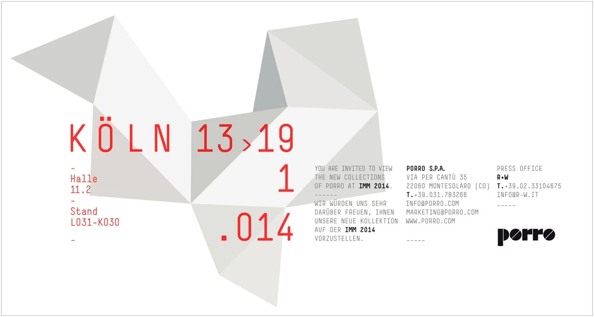 You are invited to view the new collection of Porro at IMM Cologne 2014.Hall 11.2 Stand L031 - K030
