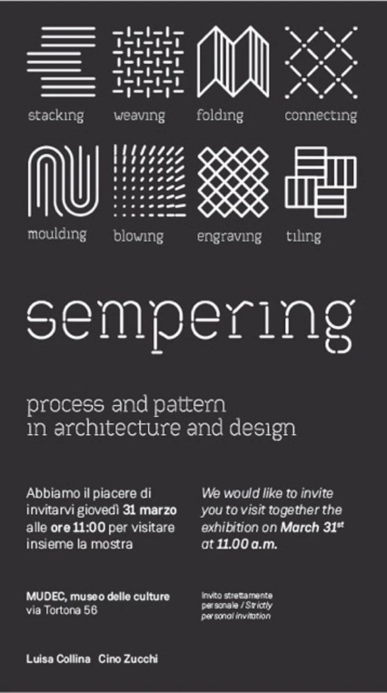 Curated by Luisa Collina, Cino Zucchi together with Valentina Auricchio e Simona Galateo, the exposition whose title is a neologism from the surname of the renown German Architect Gottfried Semper, shows how the most interesting explorations in the fields of architecture, design, landscape design, public art, can show the forms of a new work attitude able to deal with the environmental challenge with consciousness, empiricism and rigor.
