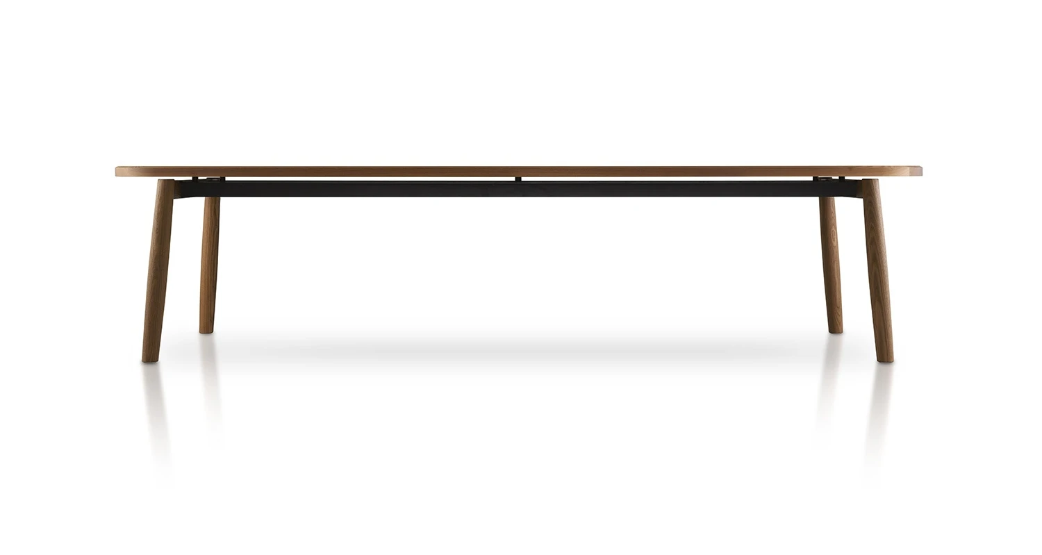 Galileo is the new Porro wooden table with organic contours and natural hues. With a solid-wood oval top, one-of-a-kind resilience, supported by four significantly thick tapered legs, Galileo selects from the new woods introduced in this year’s catalogue the heat treated ash, known for its soft, wavy grains that emerge from a dark and intense base. Statuesque, borderline sensual, 100% wood, the result of fine workmanship, it is available in 3 sizes for those who love this material’s exquisite total look that is rich in emotions.