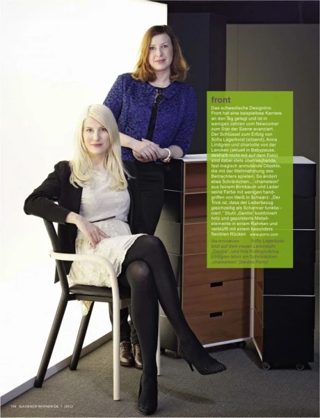 The Swedish trio Front has gained in a few years a determining role on the design scene. For this reason, the German magazine Schoener Wohnen portrayed Sofia Lagerkvist and Anna Lindgren (Charlotte von der Lancken is currently on maternity leave) among the milano-girls of design featured in the July issue, with the Gentle chair and Chameleon cupboard, their latest novelties designed for Porro.