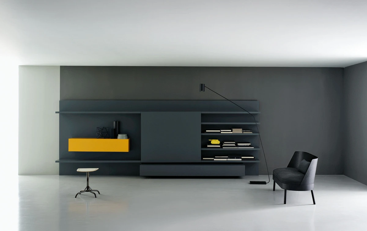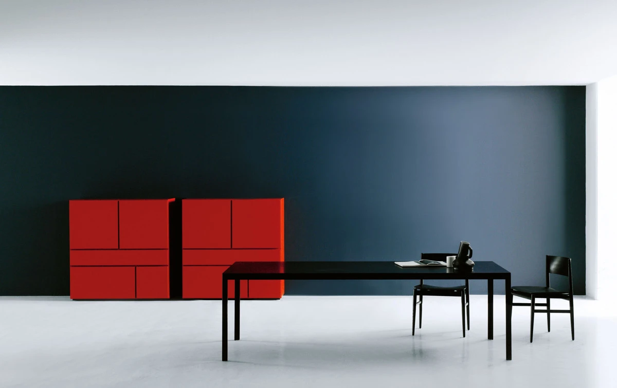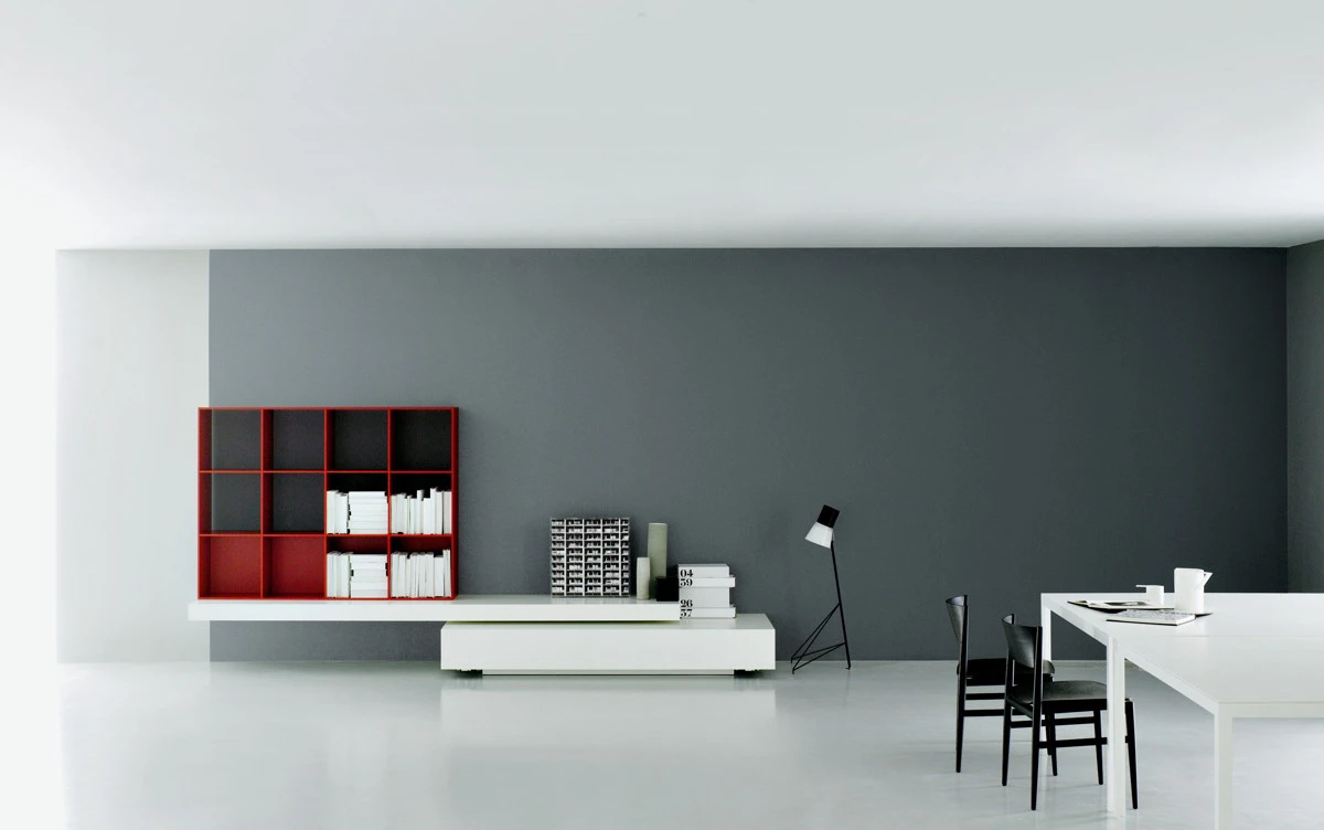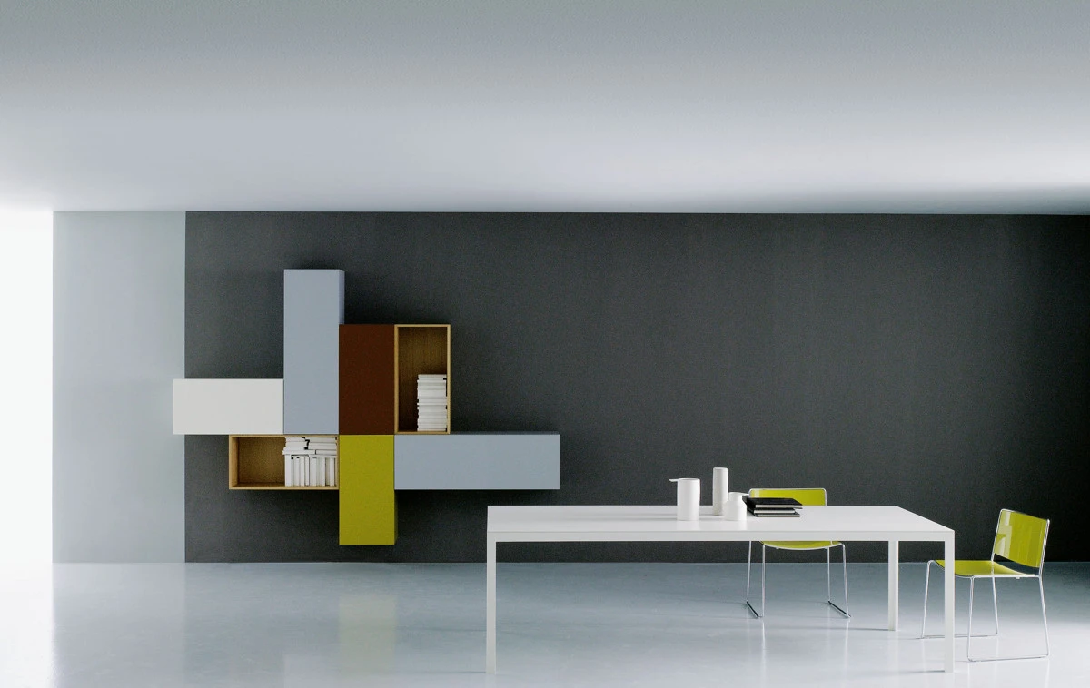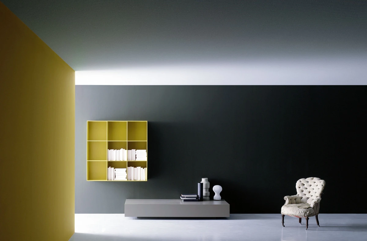 Modern arises from a pure geometric shape: the square. And from a simple idea: its movement in the space. A module repeating itself to generate objects different in materials, colours and functional purposes. Various objects – containers, tops, shelves – which proportions and formal consistency are harmonious with. An open collection of elements arises, combined and flexible, invented to draw spaces through sharp and elegant signs, shaped by rigorous lines, careful quality and refined design. A system allowing the greatest freedom to create the perfect combination of elements. A presence appropriate for every habitat.