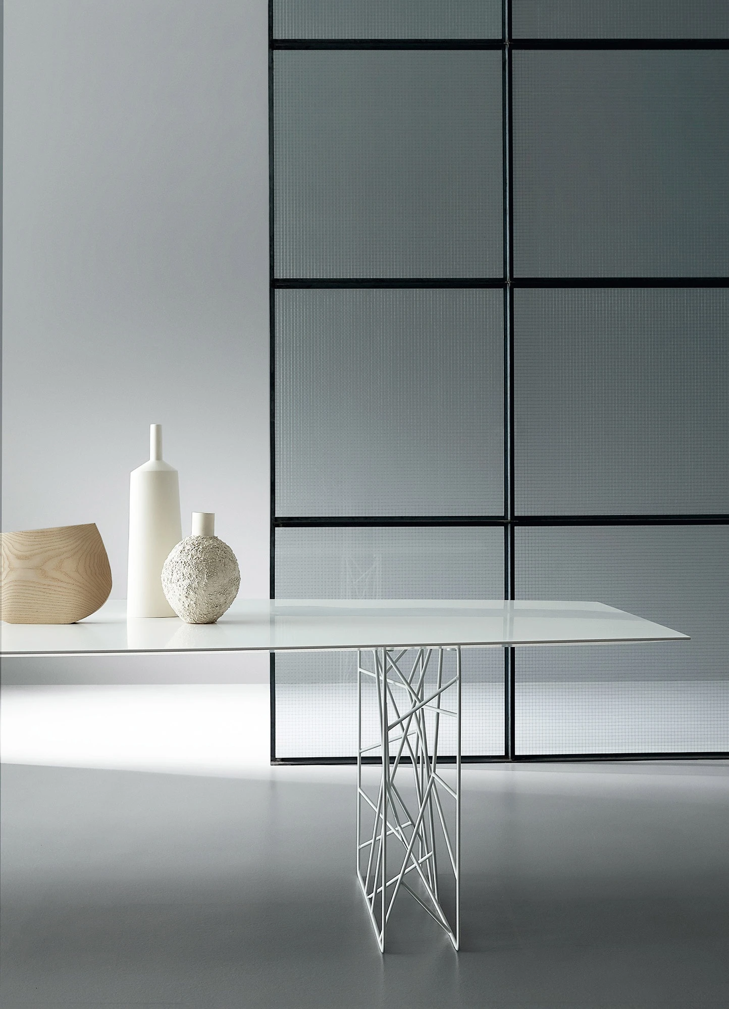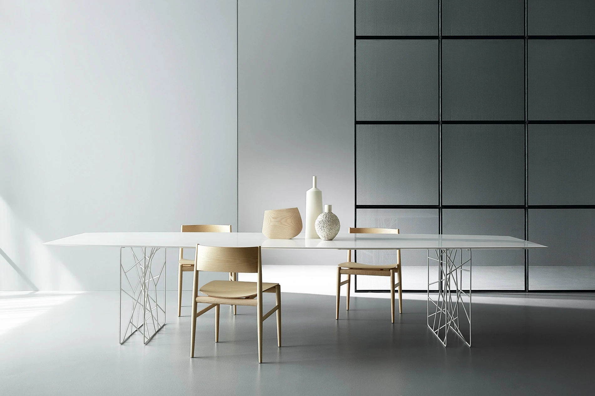 Innovating table for the distinctive design of the legs, made in steel rod. Available in several dimensions including the XL sizes, ideal for meeting rooms, Synapsis exhibits a top with a unique oval shape, cut at the ends.
